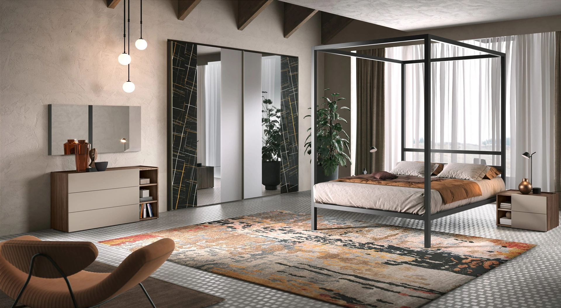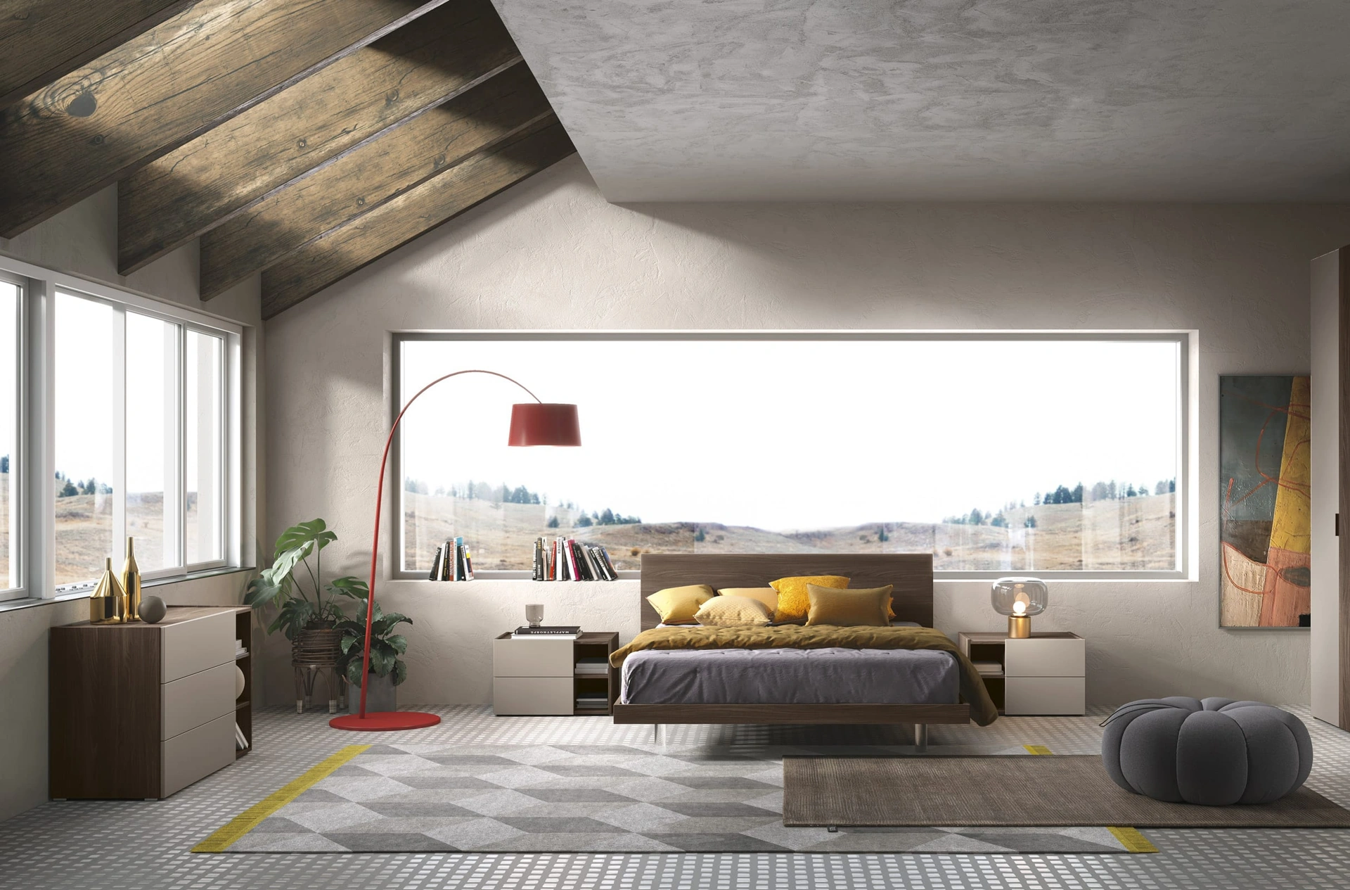 Una ricca gamma di cassettiere Adriatica: i comodini moderni in melaminico, come Gruppo Notte Spazio, sono tra le soluzioni più esclusive.