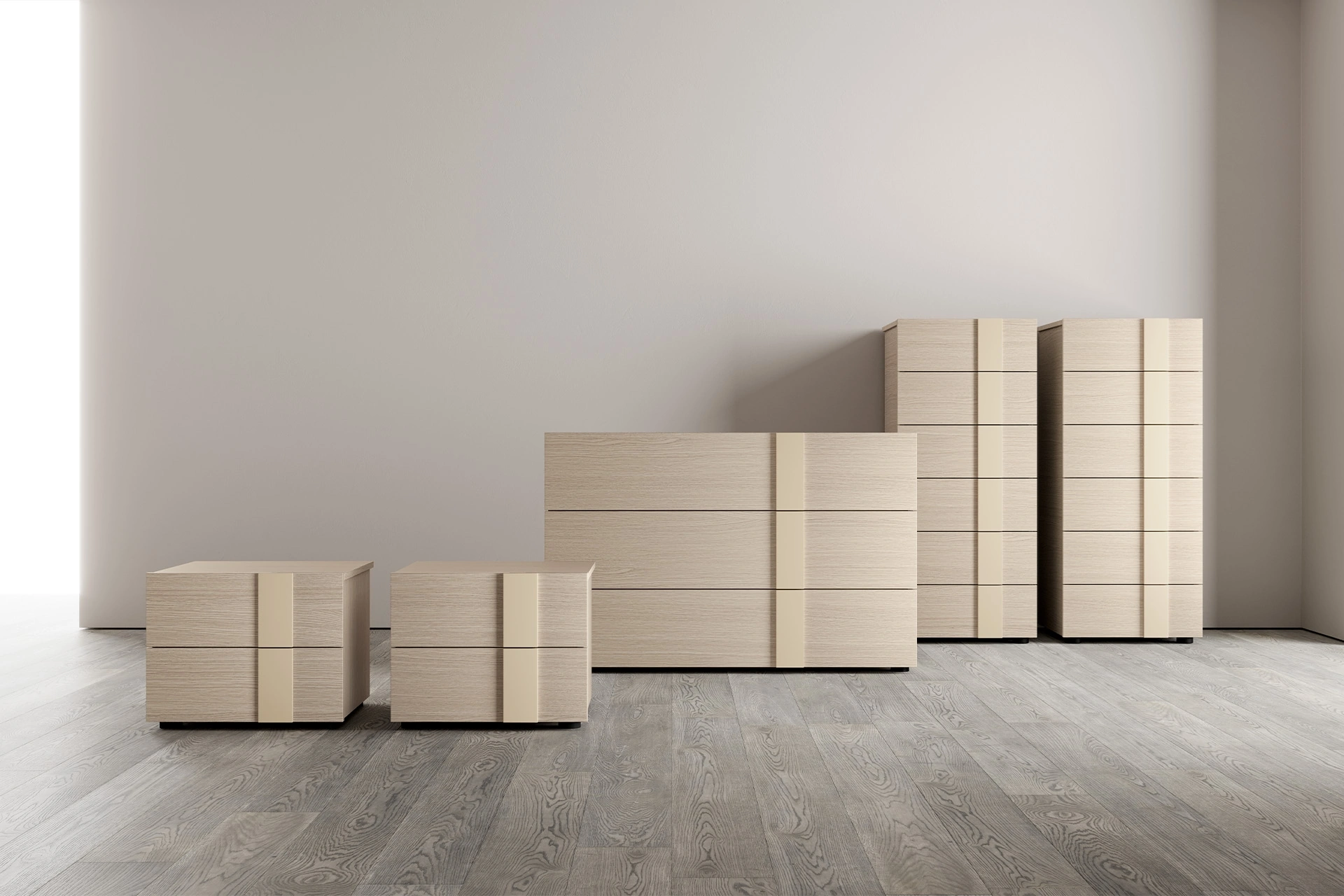 Scopri Comodini moderni e mobili con cassetti SantaLucia! Il modello Alfy Gruppo Notte costruito in melaminico è la soluzione ottimale.
