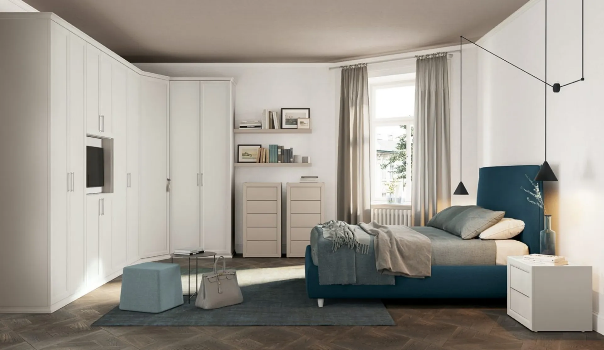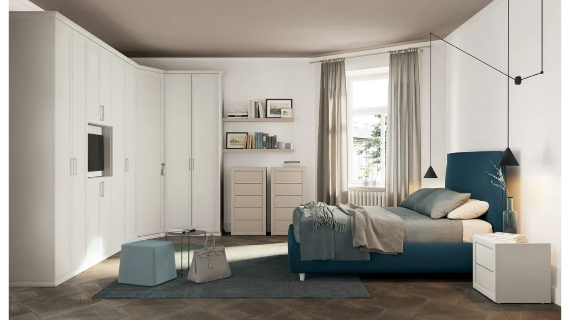 Vuoi ammobiliare la zona notte con Comodini e cassettiere di Colombini Casa? Ecco qui il modello Arcadia Solid Gruppo Notte in melaminico per spazi moderni.