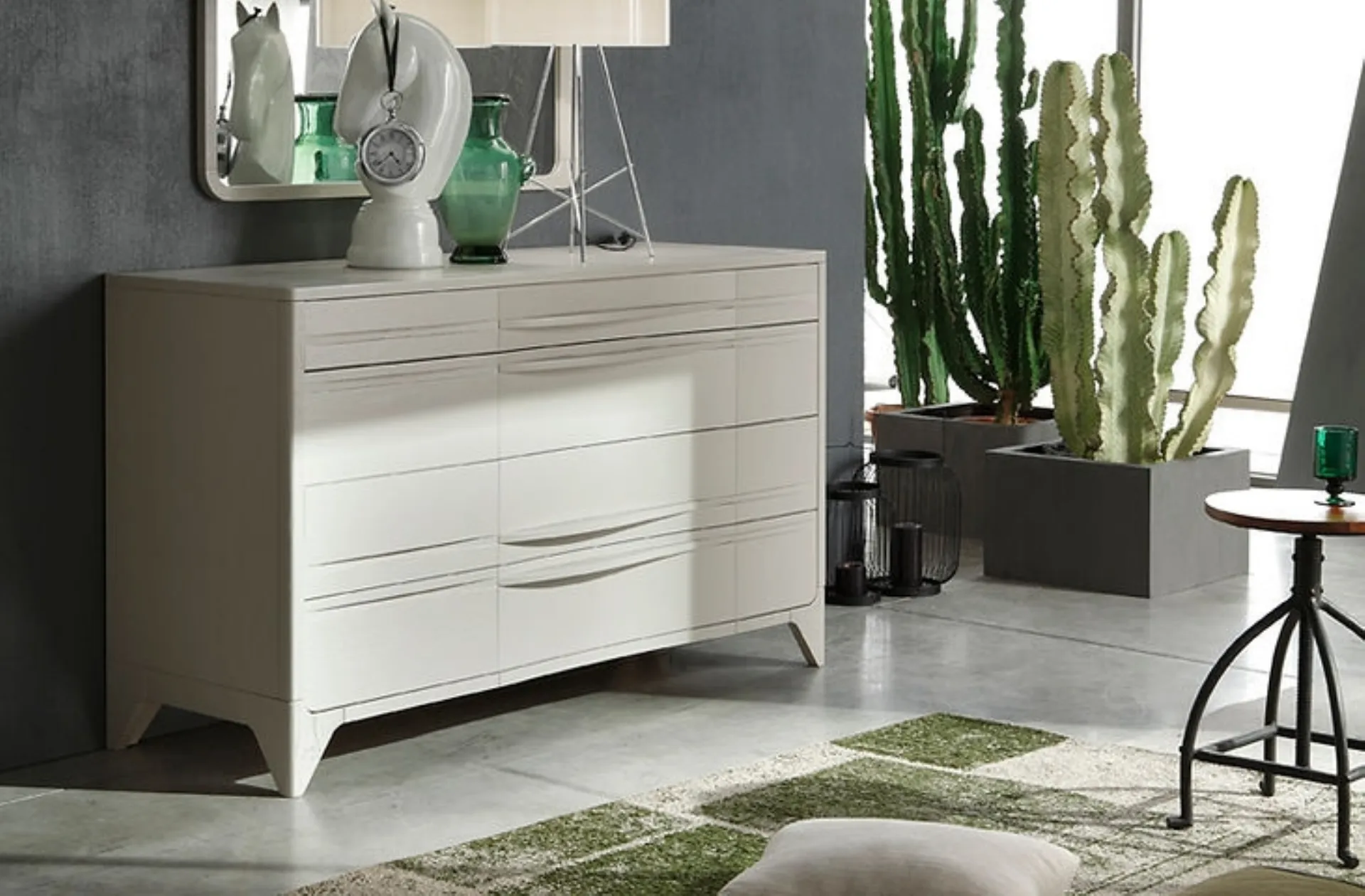 Materiali durevoli e ottima fattura per il Comò Cleo di Fasolin in in legno, disponibile in showroom insieme alle altre varie idee della firma, per fare della zona del riposo un luogo che ricalchi la tua personalità. Ti domandi come abbinare letti, armadi e comò? Con il modello di Fasolin mostrato in foto avrai un arredo studiato per un luogo dai richiami moderni. I Comodini sono arredi in grado di ultimare la camera fornendo uno spazio di appoggio sicuramente utile e versatile.