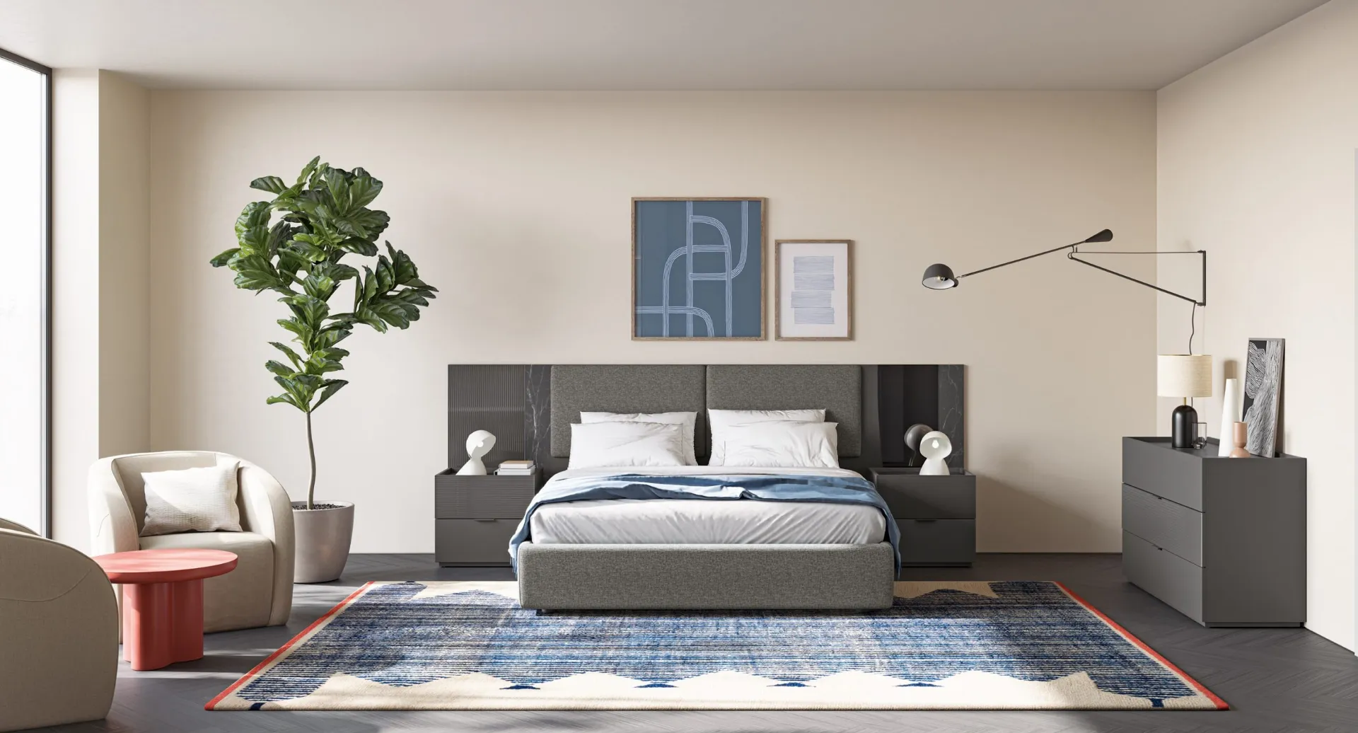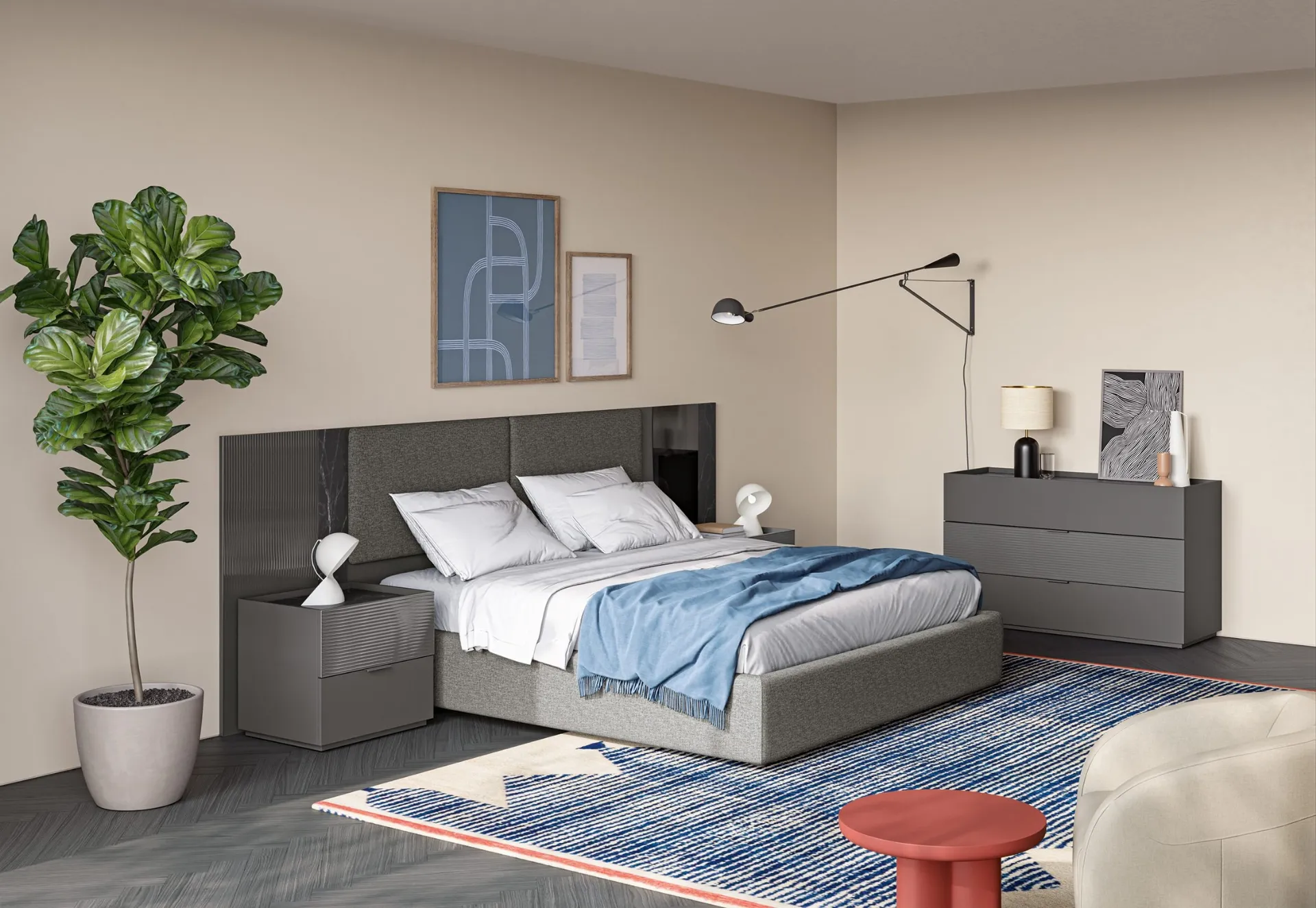 Valorizza i tuoi spazi scegliendo composizioni di pezzi abbinati o ricrea originali accostamenti di stile e tonalità contando sul catalogo di mobili ed elementi accessori per la zona notte che proponiamo, come il modello in vetro mostrato in foto, anche realizzabili su misura per te. Con i nostri gruppi notte moderni della firma Colombini Casa, specialista dell’Arredamento Casa per la zona notte, potrai creare la camera che hai sempre sognato. Gruppo Notte Eclettica EN01 di Colombini Casa: contattaci e scopri di più sulle nostre soluzioni arredative e arreda la camera come l'hai sempre sognata. La zona notte include anche i Comodini: arredi contenitivi indispensabili che lasciano la possibilità di riporre oggetti e avere a disposizione piani di appoggio per diversi usi.