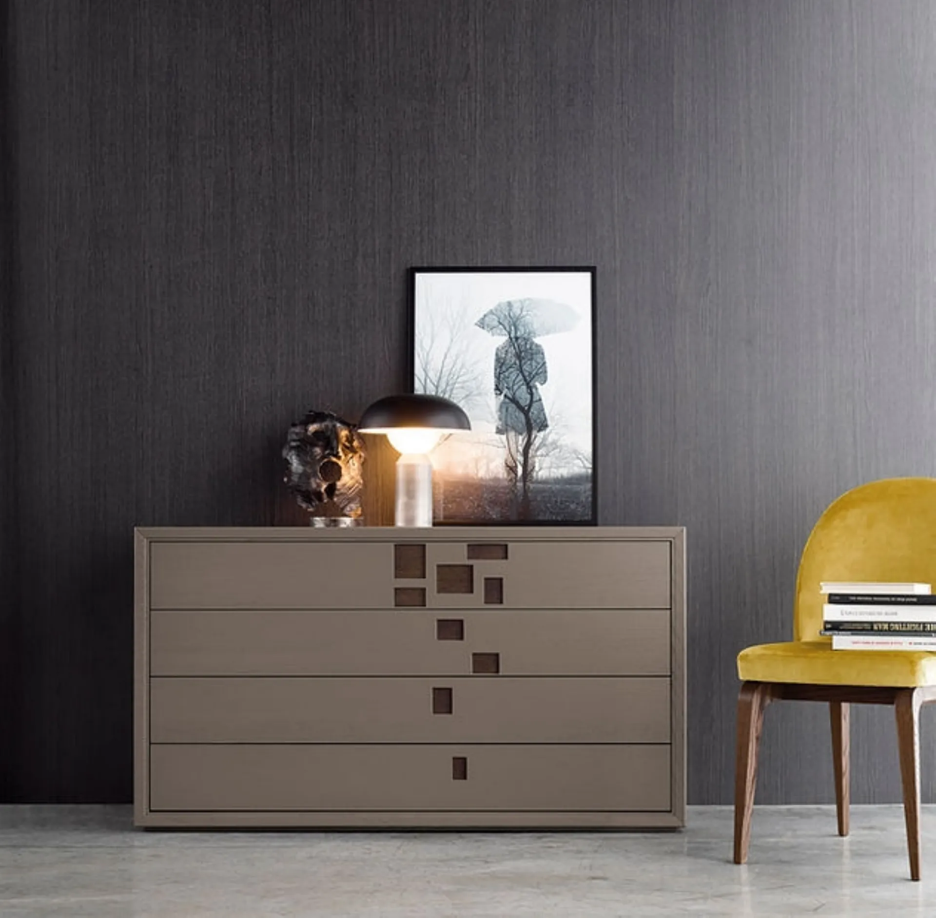 Una ricca gamma di mobili con cassetti Fasolin: i comodini moderni in legno, come Comò Break Up, sono tra le soluzioni più originali.