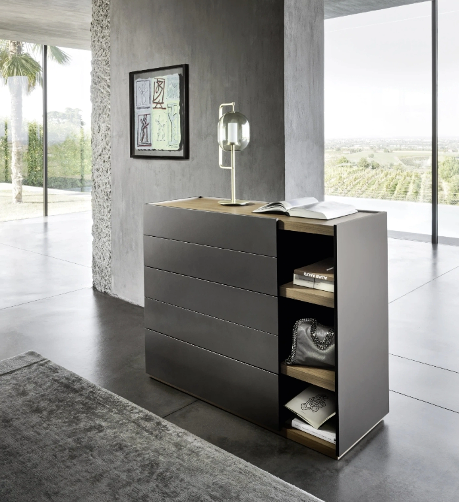 I Comodini sono mobili e complementi in grado di completare la camera garantendo uno spazio di appoggio di certo utile e poliedrico. Ti chiedi in che modo abbinare letti, armadi e comodini? Con il modello di Sangiacomo visibile in foto avrai un pezzo di arredamento adatto a uno spazio dai richiami moderni.