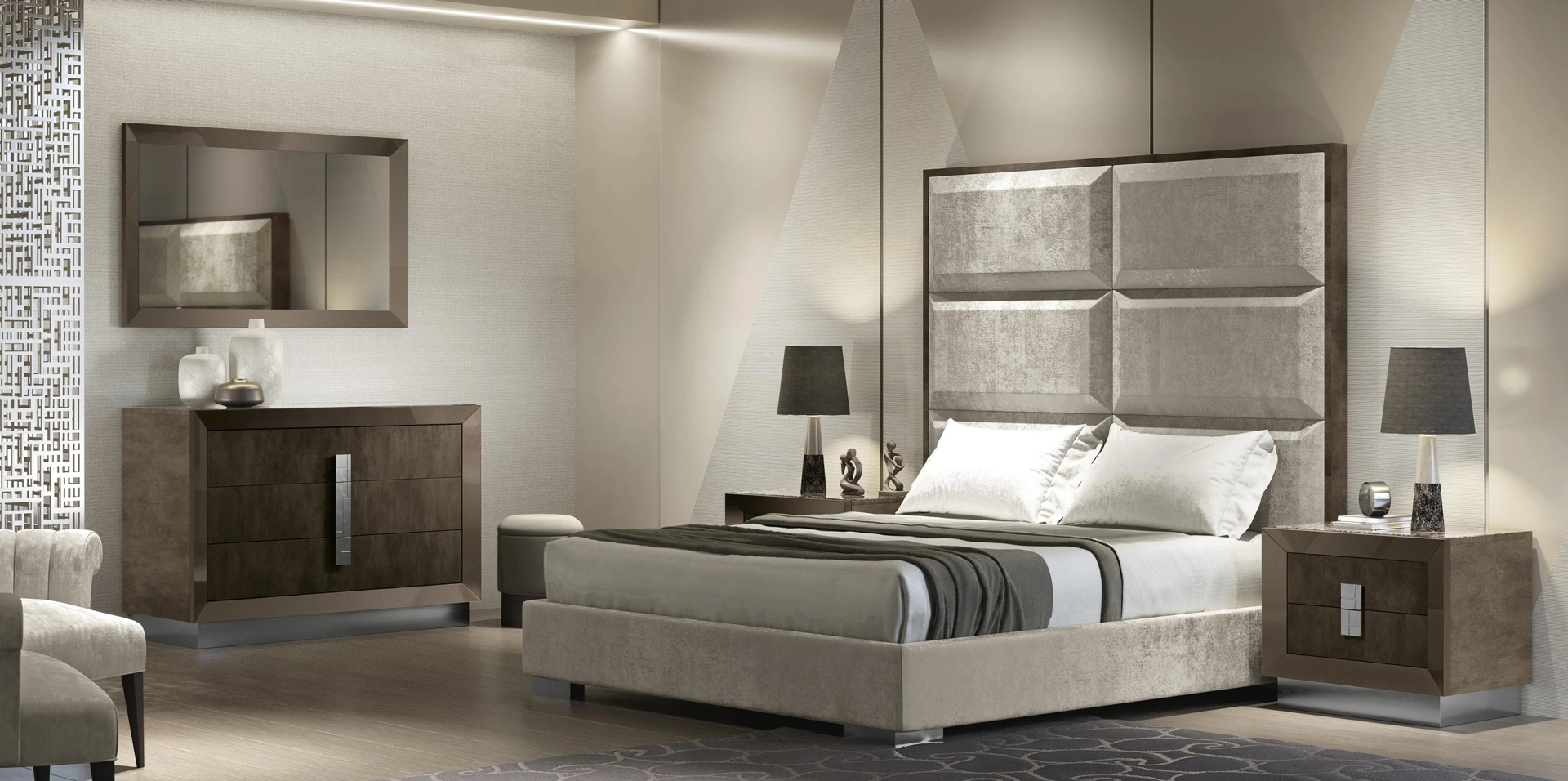 Scopri Comodini design e cassettiere Adriatica! Il modello Gruppo Notte Astra decorativo realizzato in materico è l'acquisto perfetto.