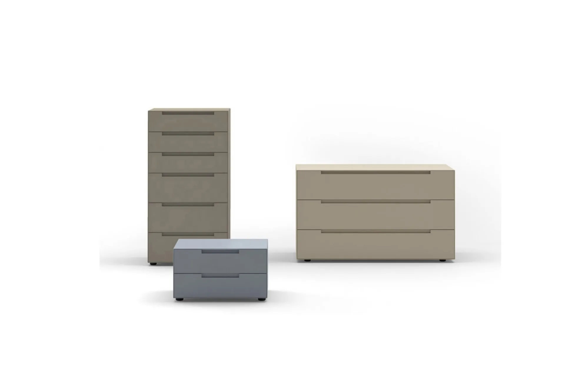 Vuoi progettare la camera da letto con Comodini e cassettiere di Sangiacomo? Ecco qui il modello Gruppo Notte Iseo in laccato opaco per spazi moderni.