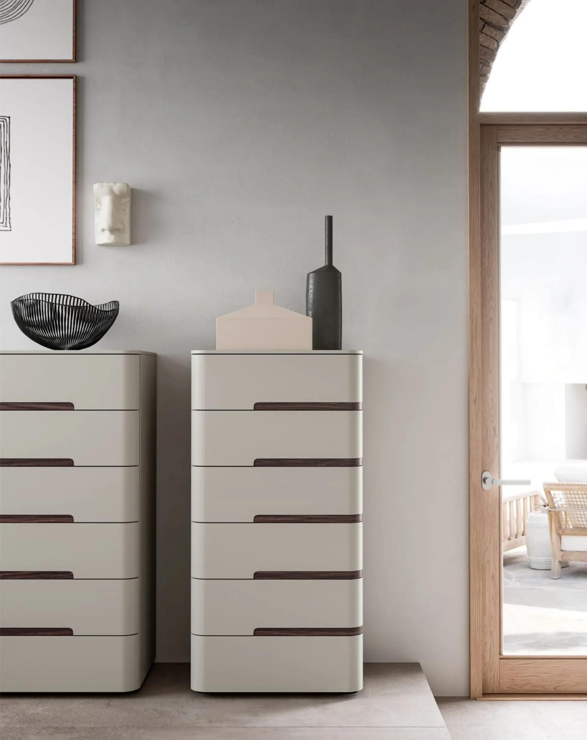 Una ricca gamma di mobili con cassetti SantaLucia: i comodini moderni in laccato opaco, come Opale Cassettiera, sono tra le soluzioni più esclusive.
