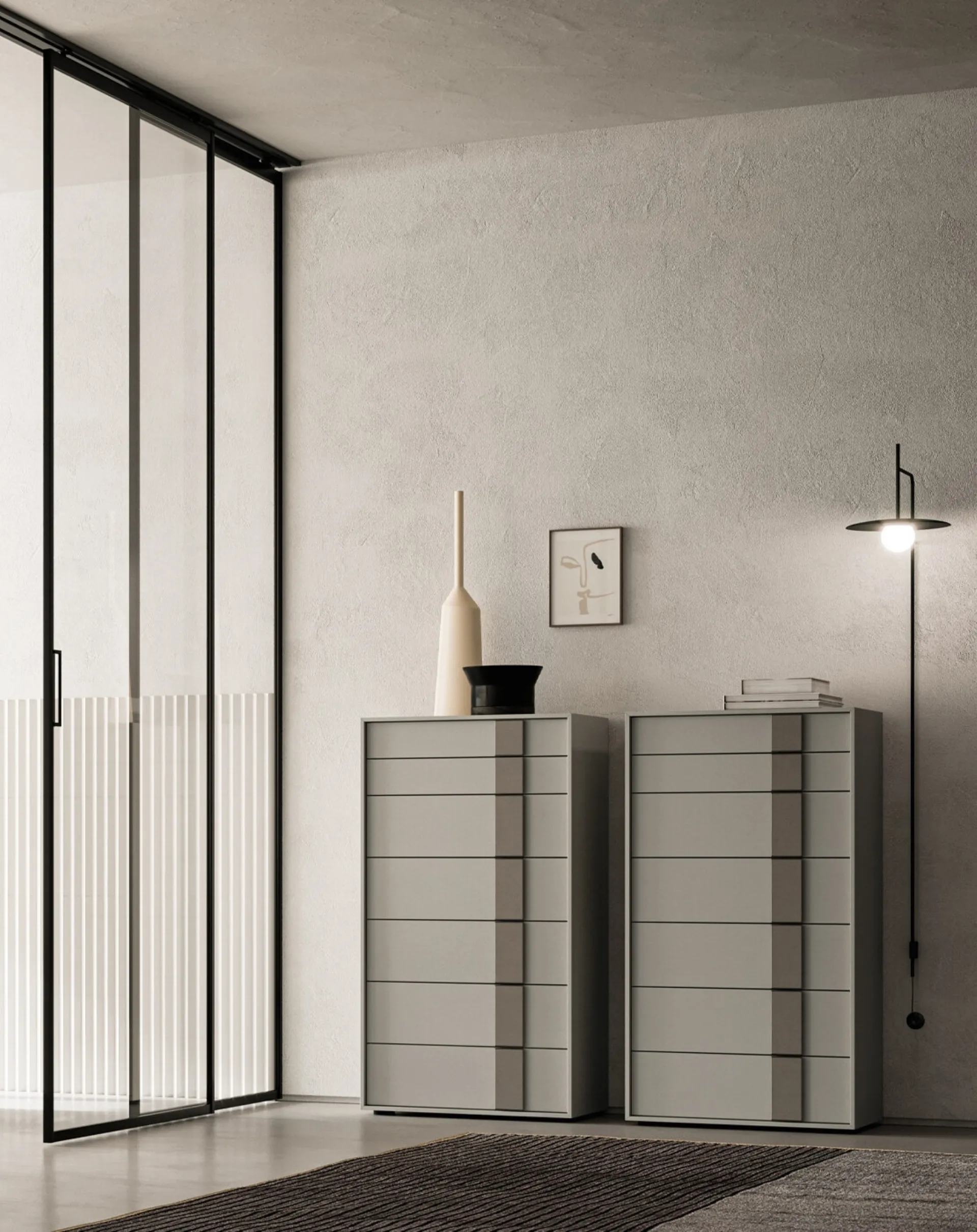 Una ricca gamma di mobili con cassetti SantaLucia: i comodini moderni in laccato opaco, come Quadro 12 Cassettiera, sono tra le soluzioni più belle.