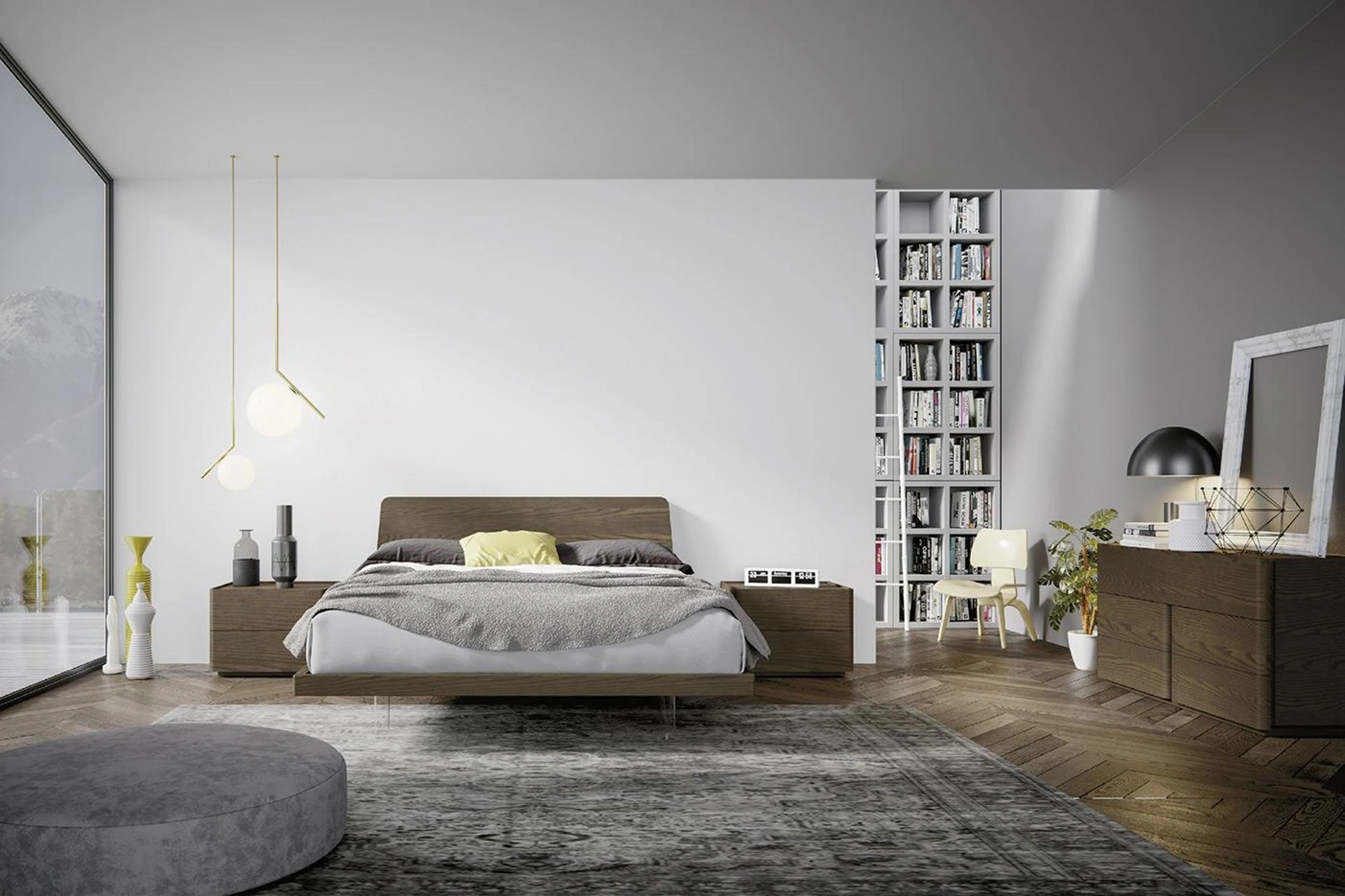 Vuoi progettare la zona notte con Comodini e cassettiere di Mobilgam? Ecco qui il modello Round Gruppo Notte in legno per spazi moderni.