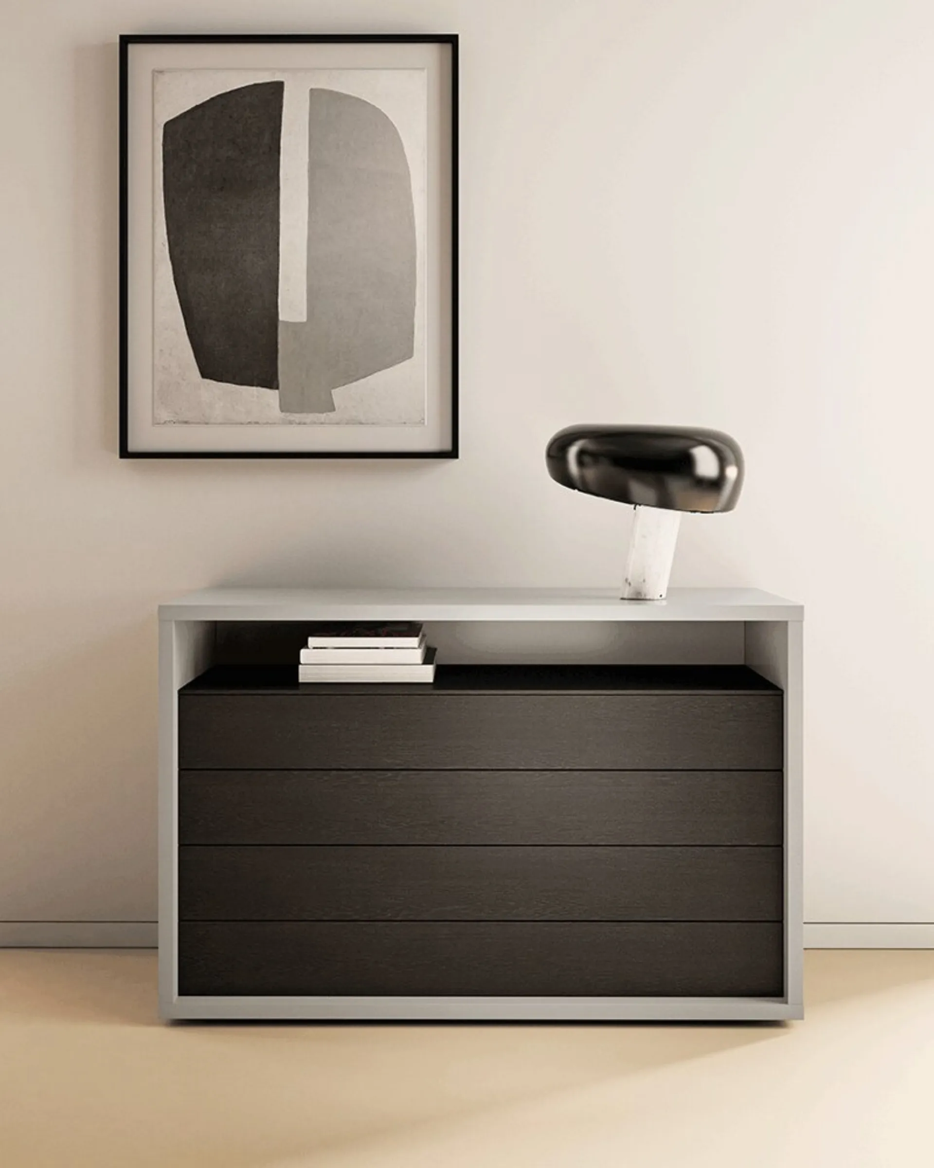 Materiali di qualità e lavorazioni eccellenti per il Comò Slim Frame di Dall'Agnese in in legno, disponibile in showroom insieme alle altre diverse idee della marca, per fare della zona del riposo un ambiente che rifletta la tua personalità. I Comodini sono arredi in grado di completare la camera da letto garantendo uno spazio di appoggio di certo utile e poliedrico. Ti chiedi in che modo abbinare letti, armadi e comò? Con il modello di Dall'Agnese presente in foto avrai un pezzo di arredamento perfetto per uno spazio dai richiami moderni.