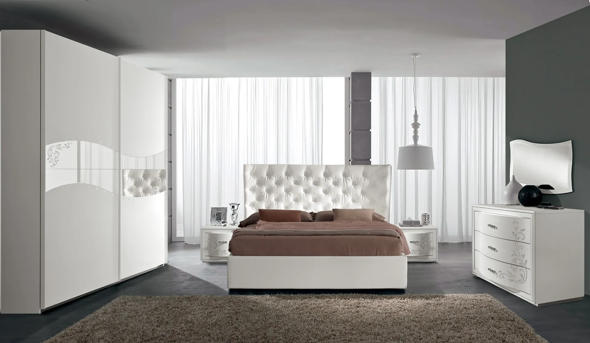Materiali di qualità e ottima fattura per il Gruppo Notte Prestige 01 di Spar in in legno, disponibile in negozio unitamente alle altre differenti proposte del marchio, per fare della zona notte un progetto di arredo che rispecchi i tuoi gusti. Ti chiedi come abbinare letti, armadi e comodini? Con il modello di Spar presente in foto avrai un mobile adatto per uno spazio dai richiami classici.