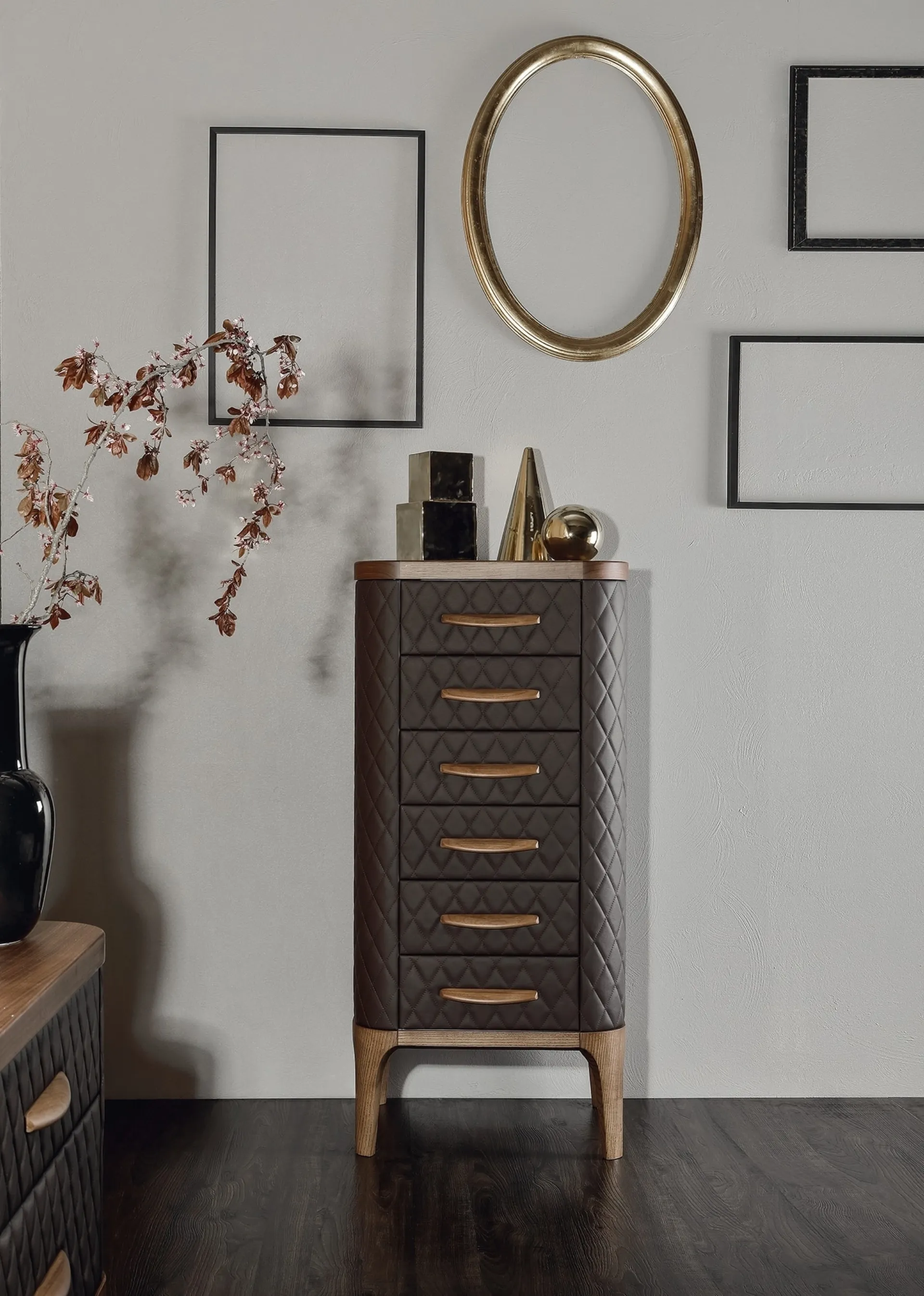 Vuoi progettare la camera da letto con Comodini e mobili con cassetti di Tonin Casa? Ti presentiamo il modello Tiffany Cassettiera in pelle per spazi design.