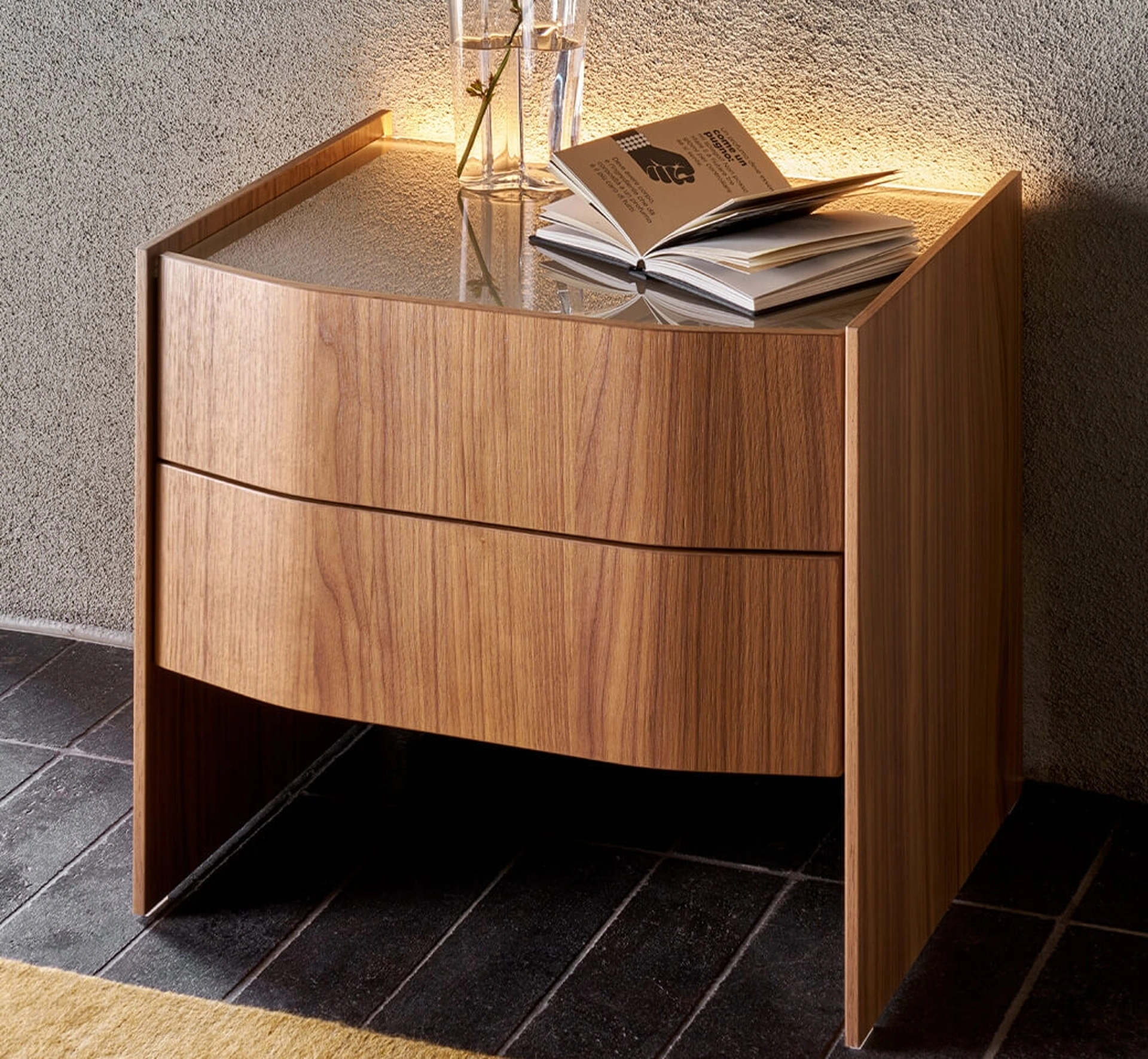 Vuoi allestire la zona notte con Comodini e mobili con cassetti di Sangiacomo? Eccoti il modello Virgola in legno per spazi design.