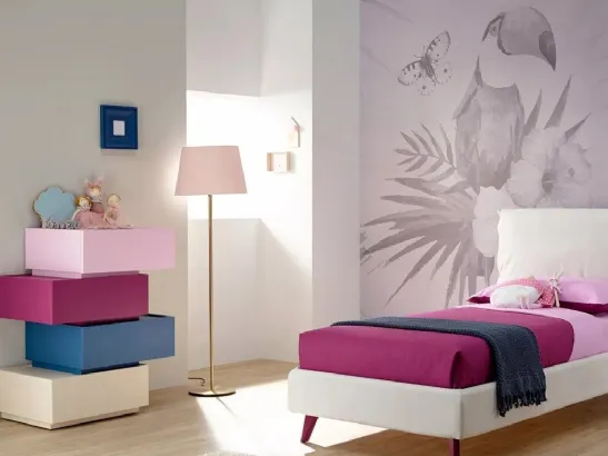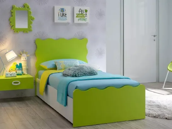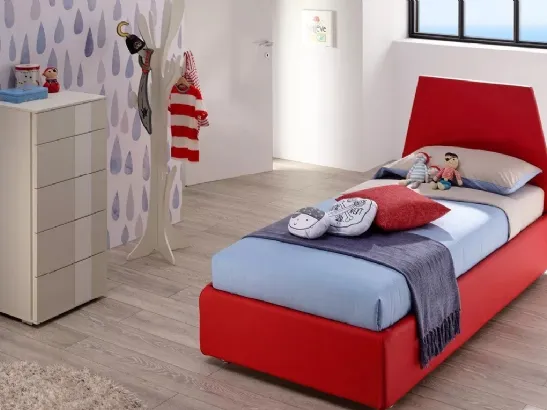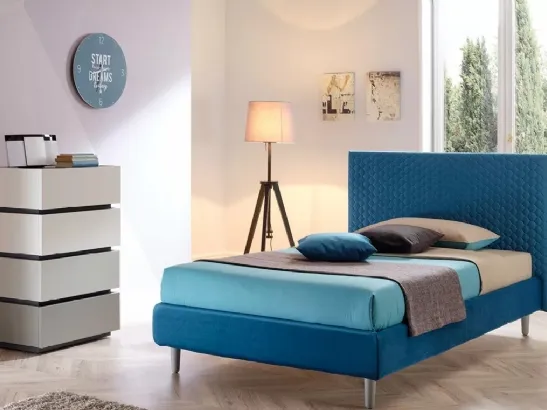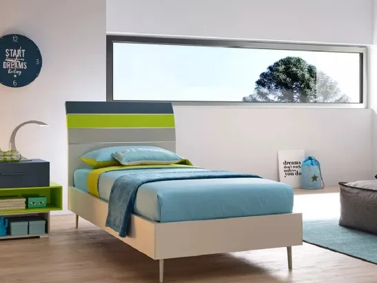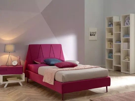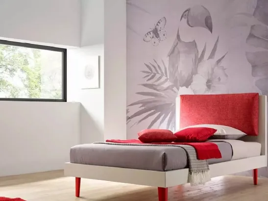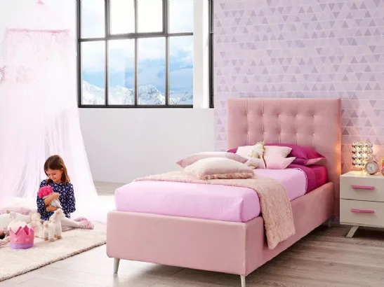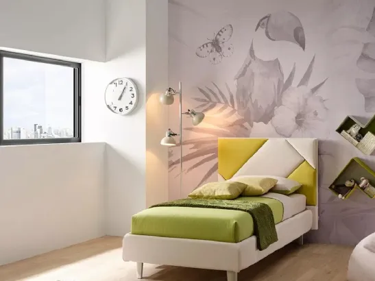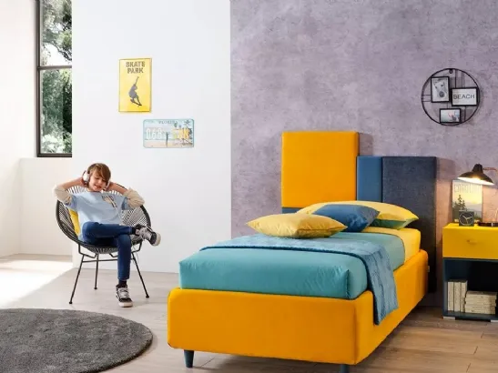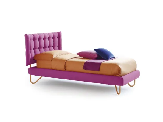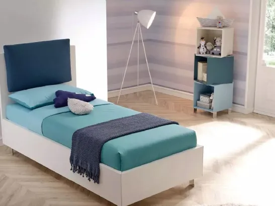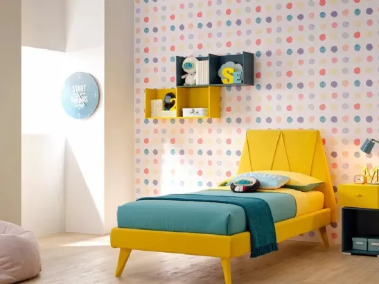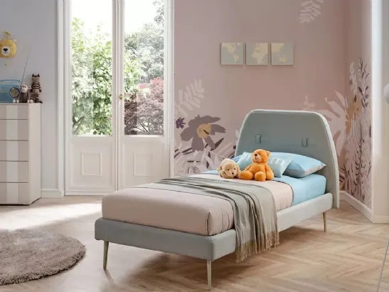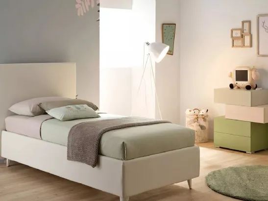 Se desideri letti singoli imbottiti, ecco qui il modello Space in tessuto per arricchire la cameretta.