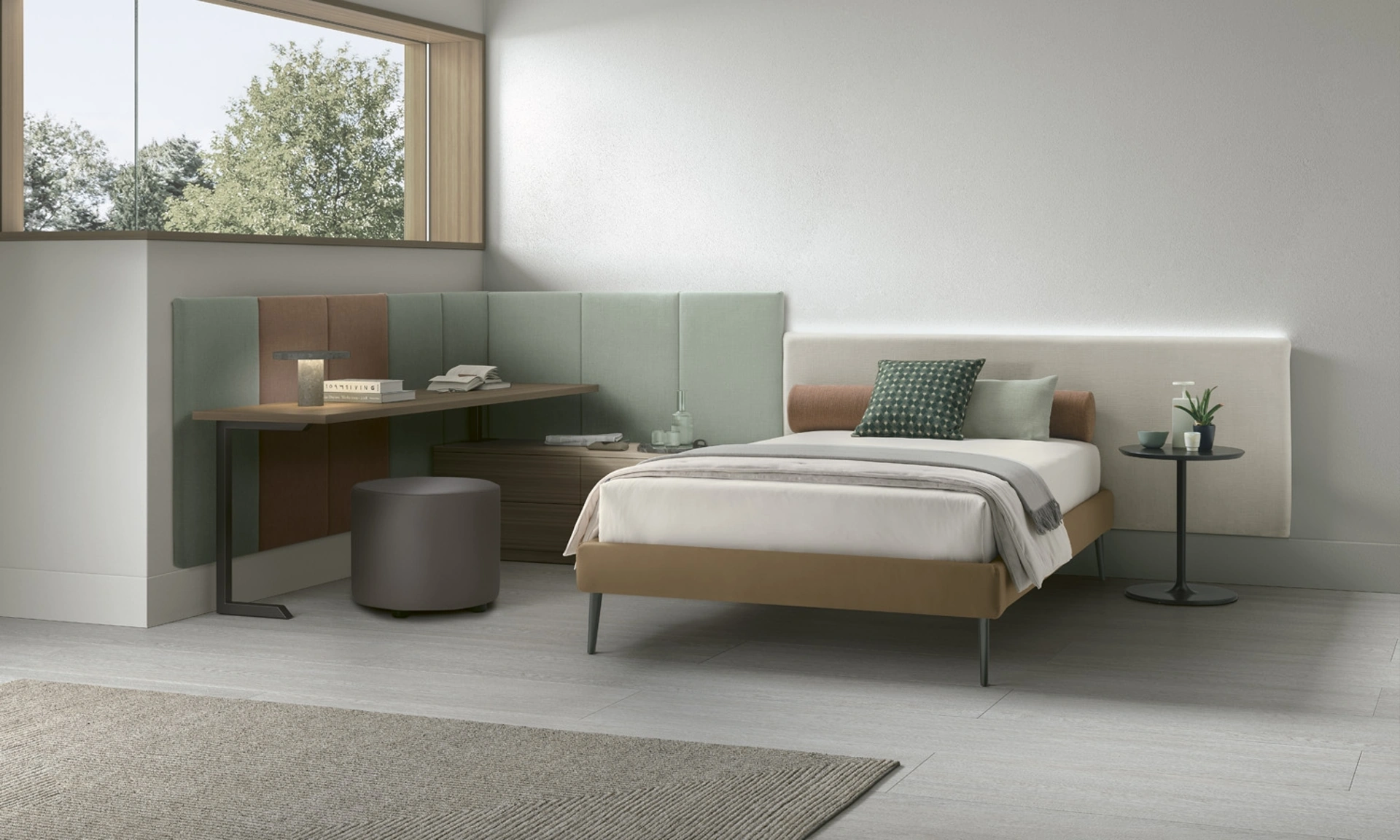 Se vuoi letti singoli imbottiti, ti presentiamo il modello Boiserie in tessuto per impreziosire la camera dei più piccoli.