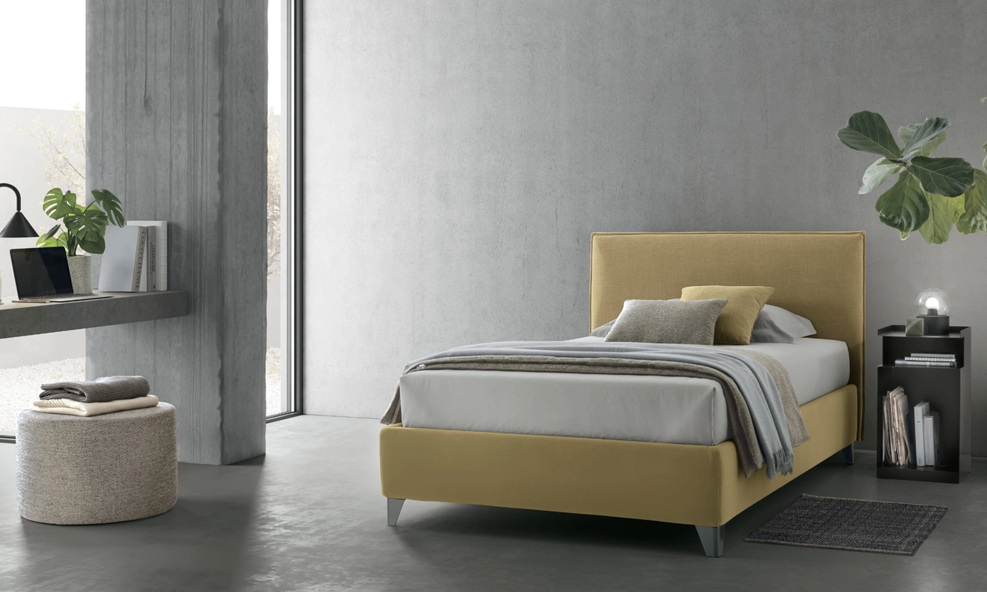 Il letto singolo Mood in tessuto nell'immagine, tra i modelli imbottiti moderni di V&Nice, è perfetto per garantire il sonno più profondo.