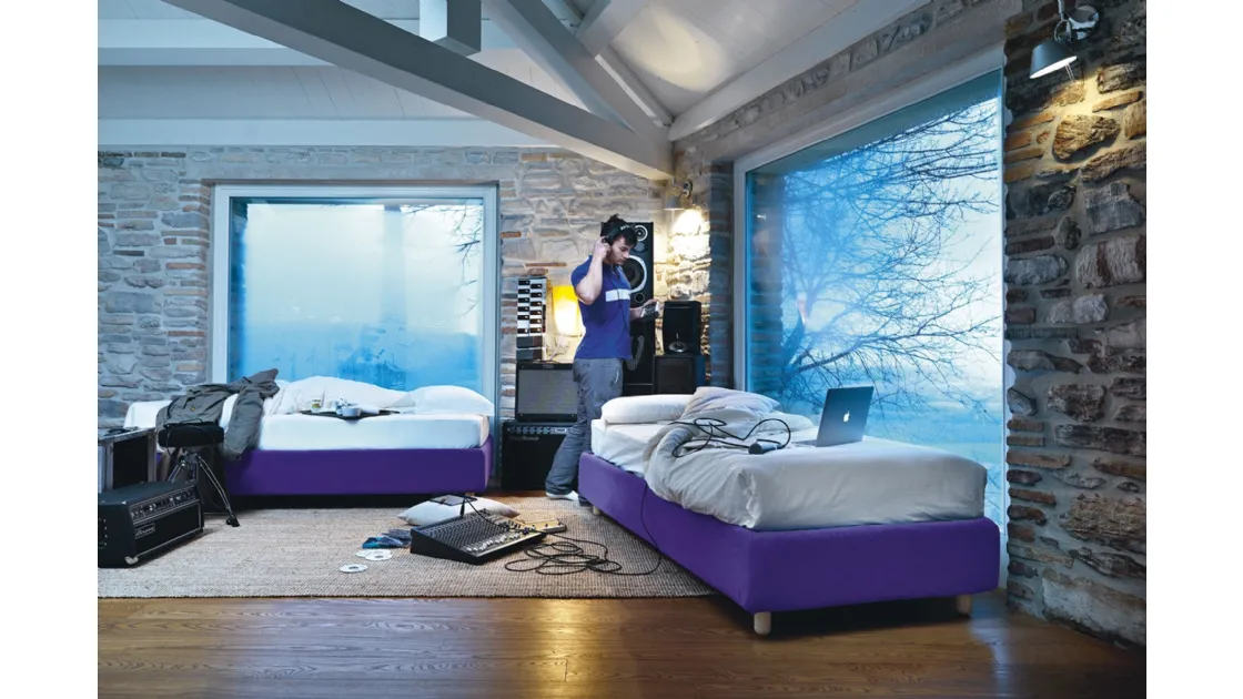 Ottieni informazioni sul Letto singolo Sommier di Noctis in foto: è la soluzione per ricreare ottimamente un ambiente accogliente, bello e ben organizzato, ideale per i tuoi bambini. I Letti singoli sommier per la cameretta disponibili nel nostro showroom risolvono qualsiasi problematicità di spazio e praticità, assicurando al contempo un design unico. Una ricca gamma di letti moderni in tessuto ti attende: il brand Noctis propone diverse versioni di letto, che rispondono sempre alle necessità dei bambini. Materiali di prima scelta e pitture ecologiche caratterizzano le proposte della firma: se la stanza ha dimensioni contenute, sono diversificate le soluzioni disponibili, sempre capaci di congiungere funzionalità ed ergonomia.