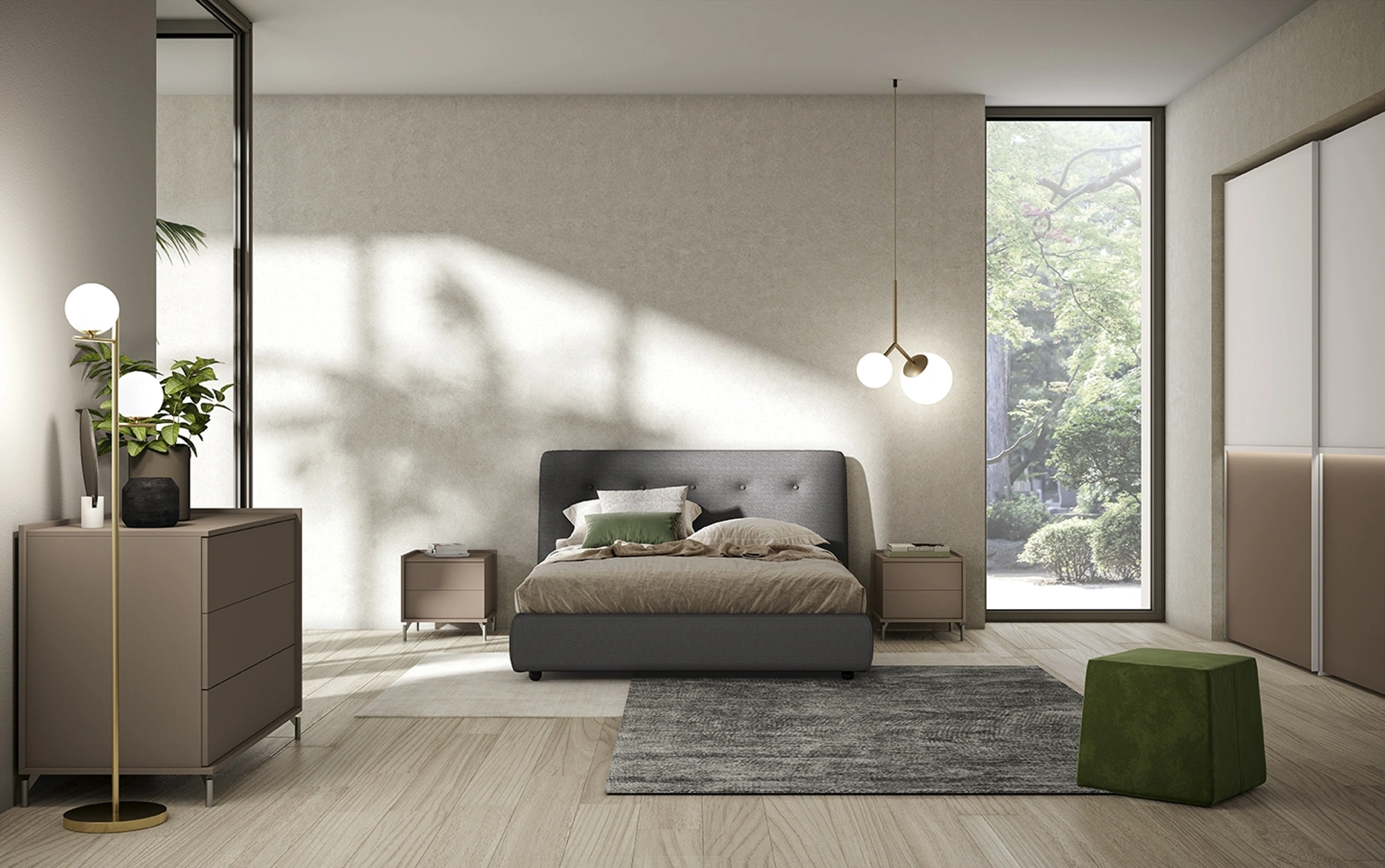 Se vuoi ricreare un'ambientazione intima e rasserenante, il modello presente in foto fa al caso tuo: nella stanza del riposo dovrai ricreare un'ambientazione rasserenante, per farti rigenerare le energie ogni notte. Scopri nel nostro punto vendita una ricca gamma di Letti imbottiti, mobili e complementi per la zona notte dei migliori produttori. Qualità dei materiali e grande comfort sono gli aspetti che connotano tutti i prodotti della marca, tra cui anche il letto in tessuto nell'immagine. Con il Letto Adagio di Colombini Casa del noto e conosciuto brand, specialista del settore, potrai arricchire la tua camera garantendoti comfort, funzionalità e uno stile raffinato.