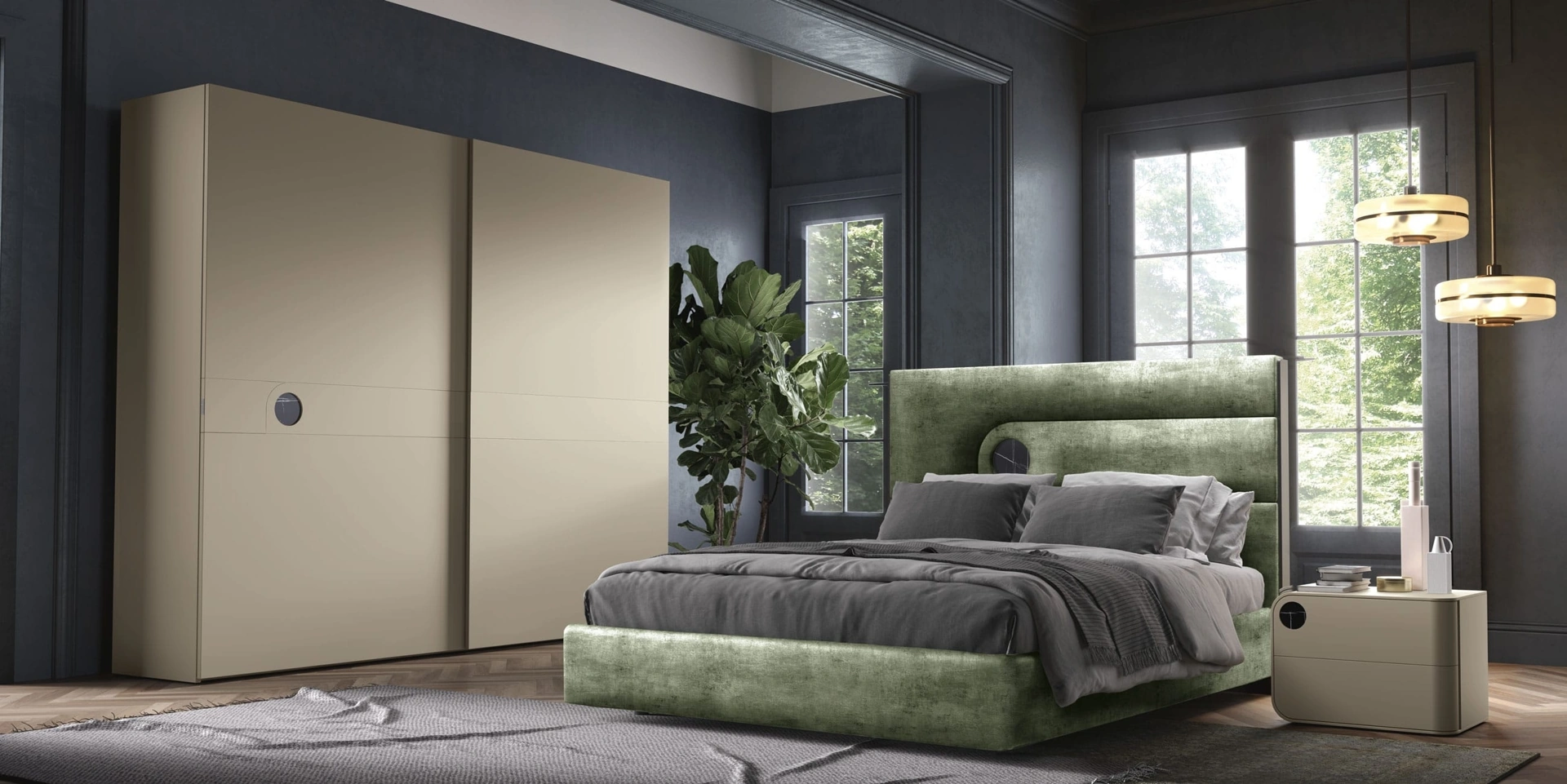 Il letto Opus in tessuto, tra i modelli imbottiti matrimoniali design di Adriatica, è pensato per garantirti il riposo migliore.