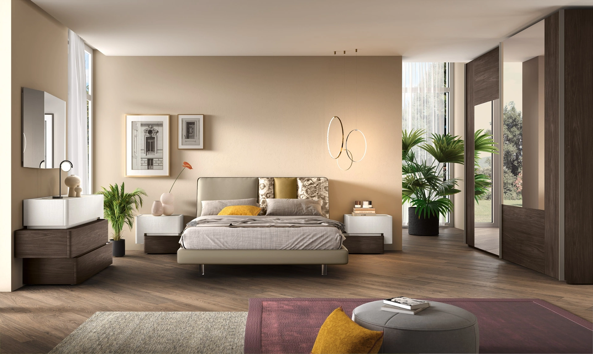 Se desideri letti matrimoniali imbottiti, ti presentiamo il modello Composizione 40 in tessuto per arricchire la zona notte.