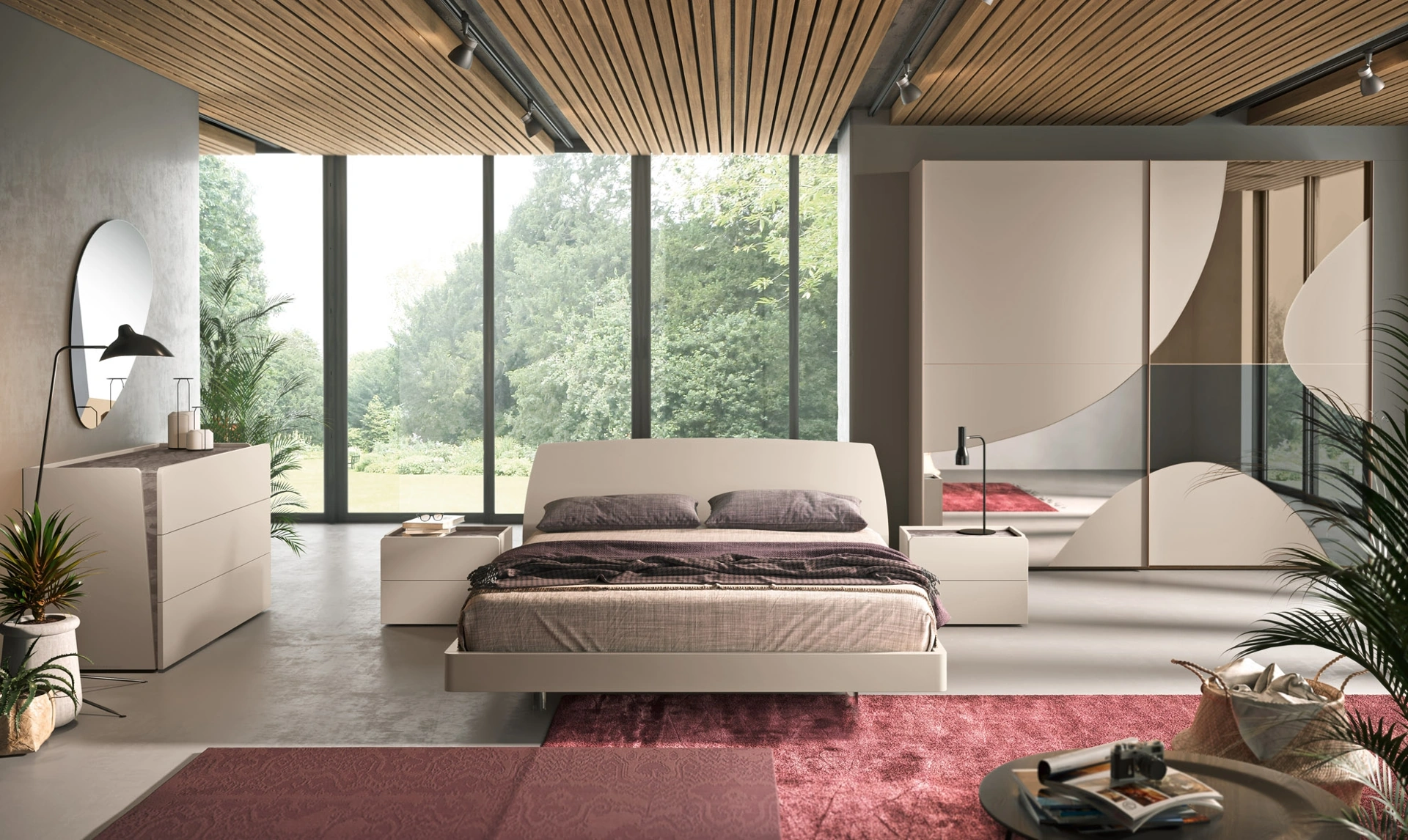 Il letto Composizione 16 in laccato opaco, tra i modelli con testiera matrimoniali moderni di Corso 11, è ideale per assicurarti il riposo migliore.
