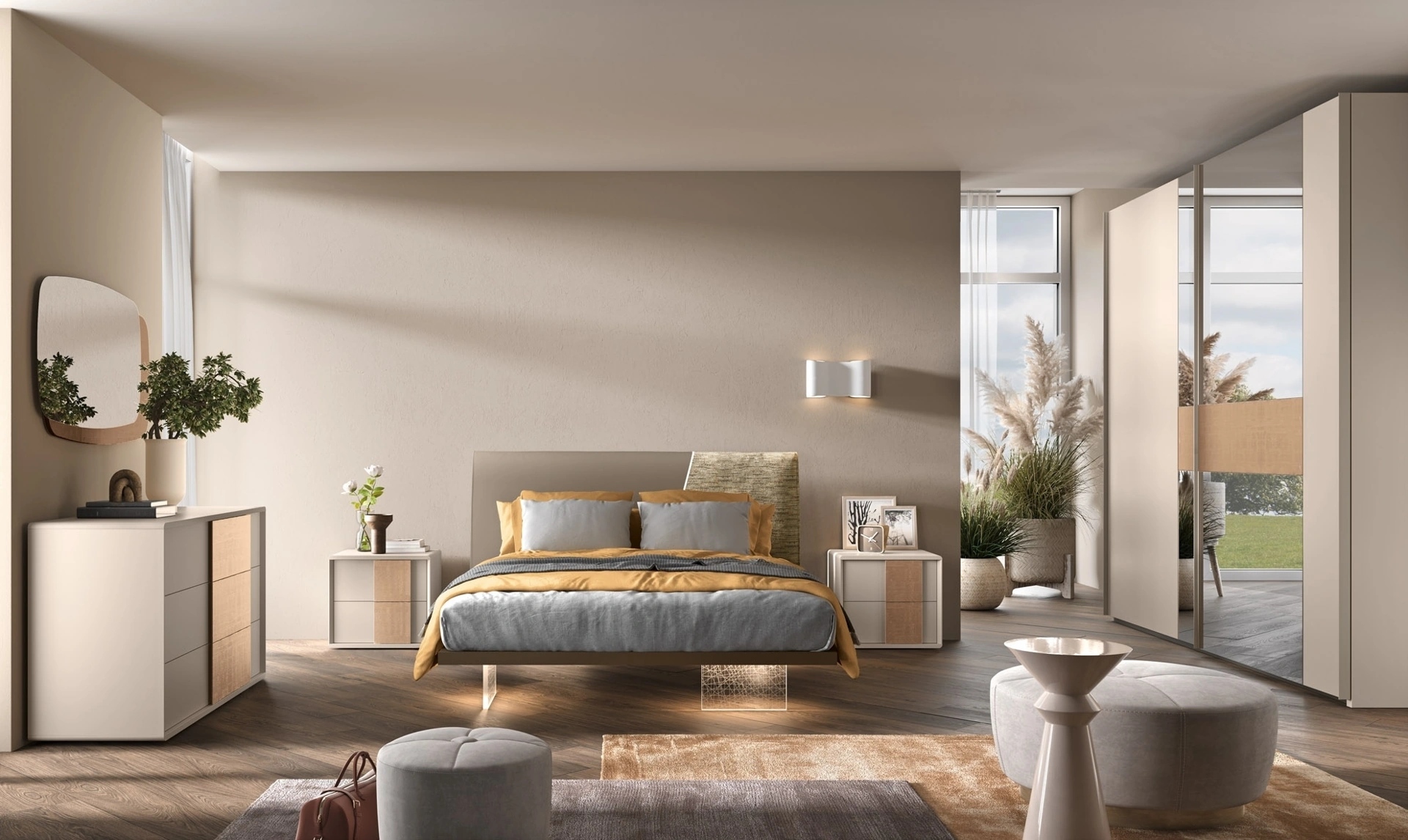 Vuoi progettare la zona notte? Eccoti il letto in pelle Composizione 17 di Corso 11 per spazi moderni.