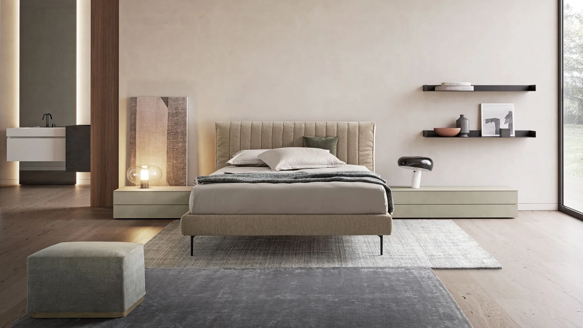 Il letto Goose in tessuto, tra i modelli imbottiti matrimoniali moderni di Dall'Agnese, è ideale per garantirti il relax totale.