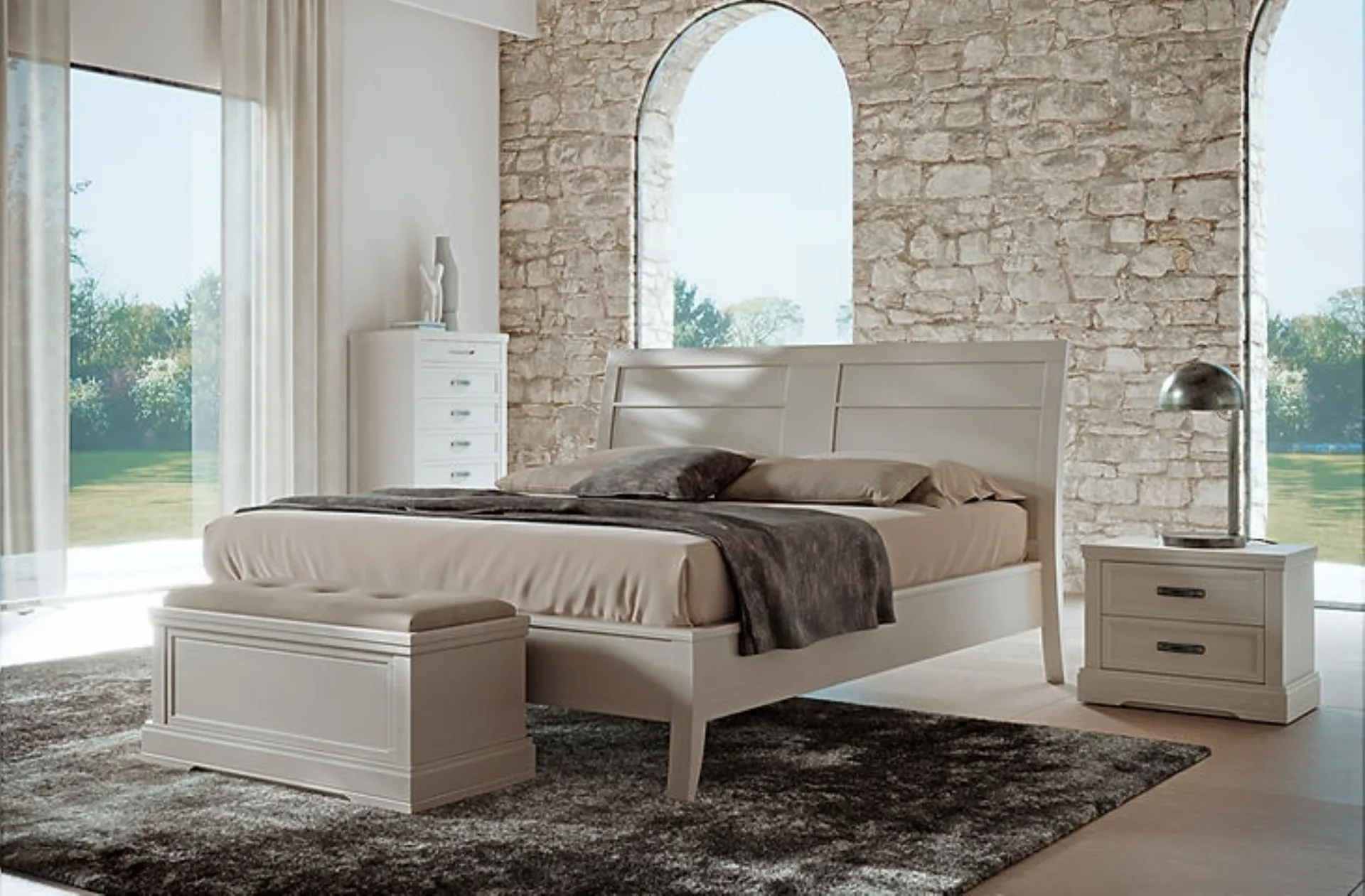 Vuoi ridefinire la zona notte? Eccoti il letto in laccato opaco Emma di Fasolin per spazi moderni.