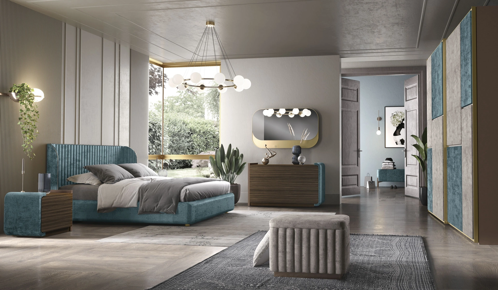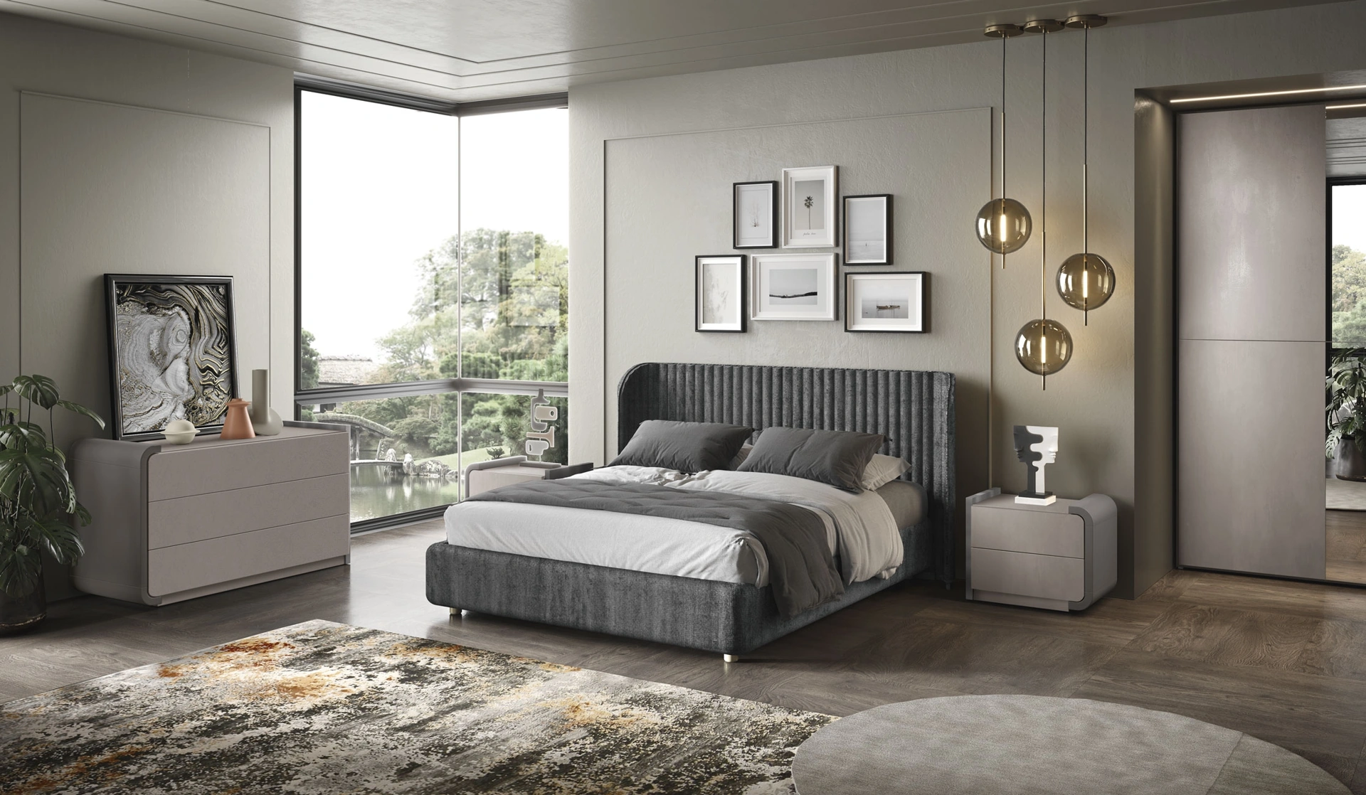 Il letto Ikelo in tessuto, tra i modelli imbottiti matrimoniali design di Adriatica, è perfetto per garantirti il sonno più profondo.