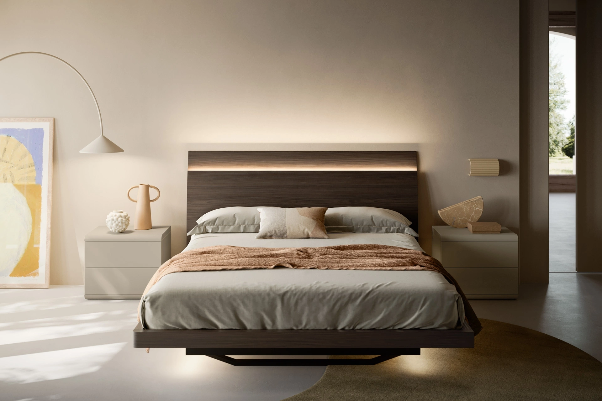 Il letto Lotus in melaminico, tra i modelli con testiera matrimoniali design di SantaLucia, è perfetto per assicurarti il riposo migliore.