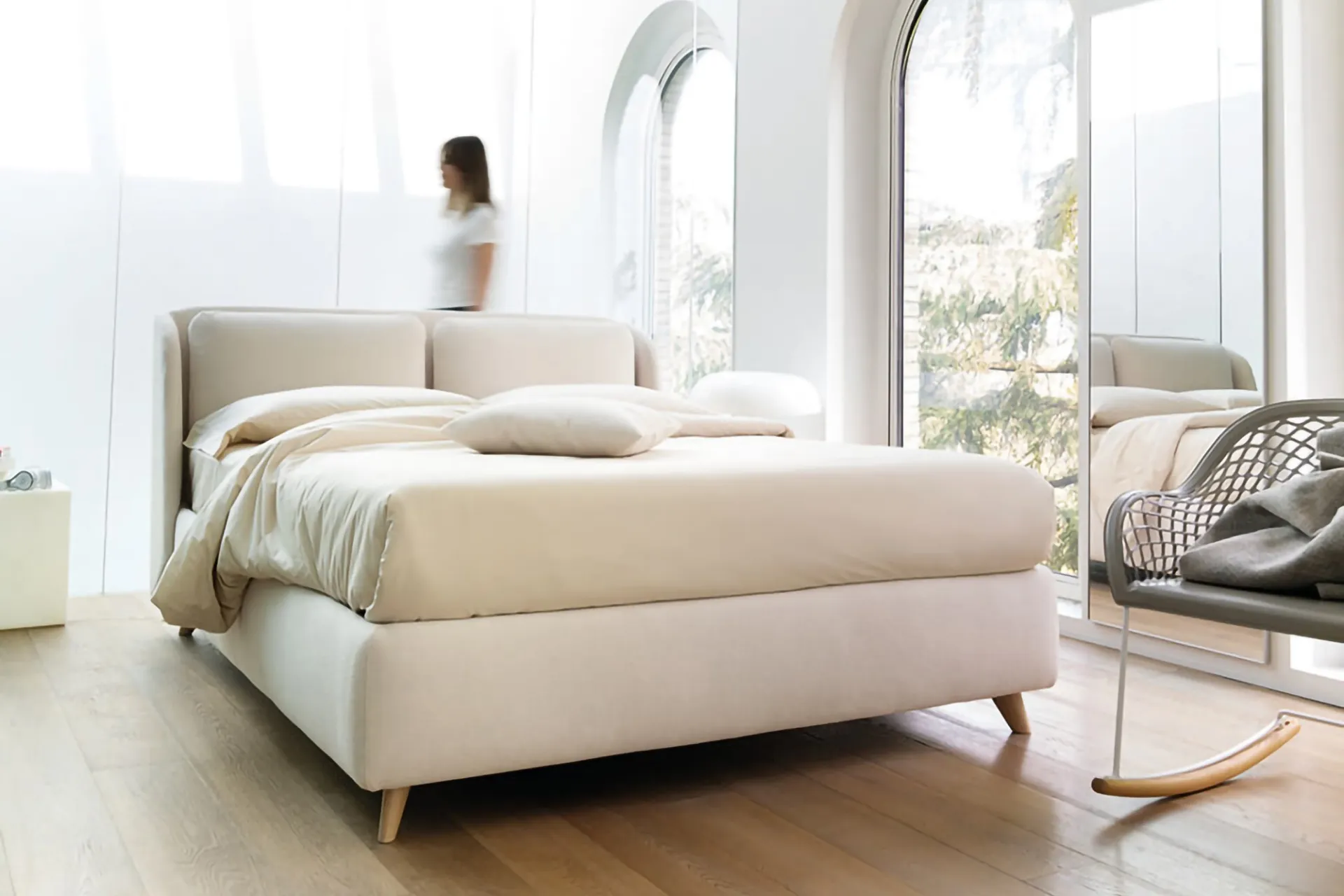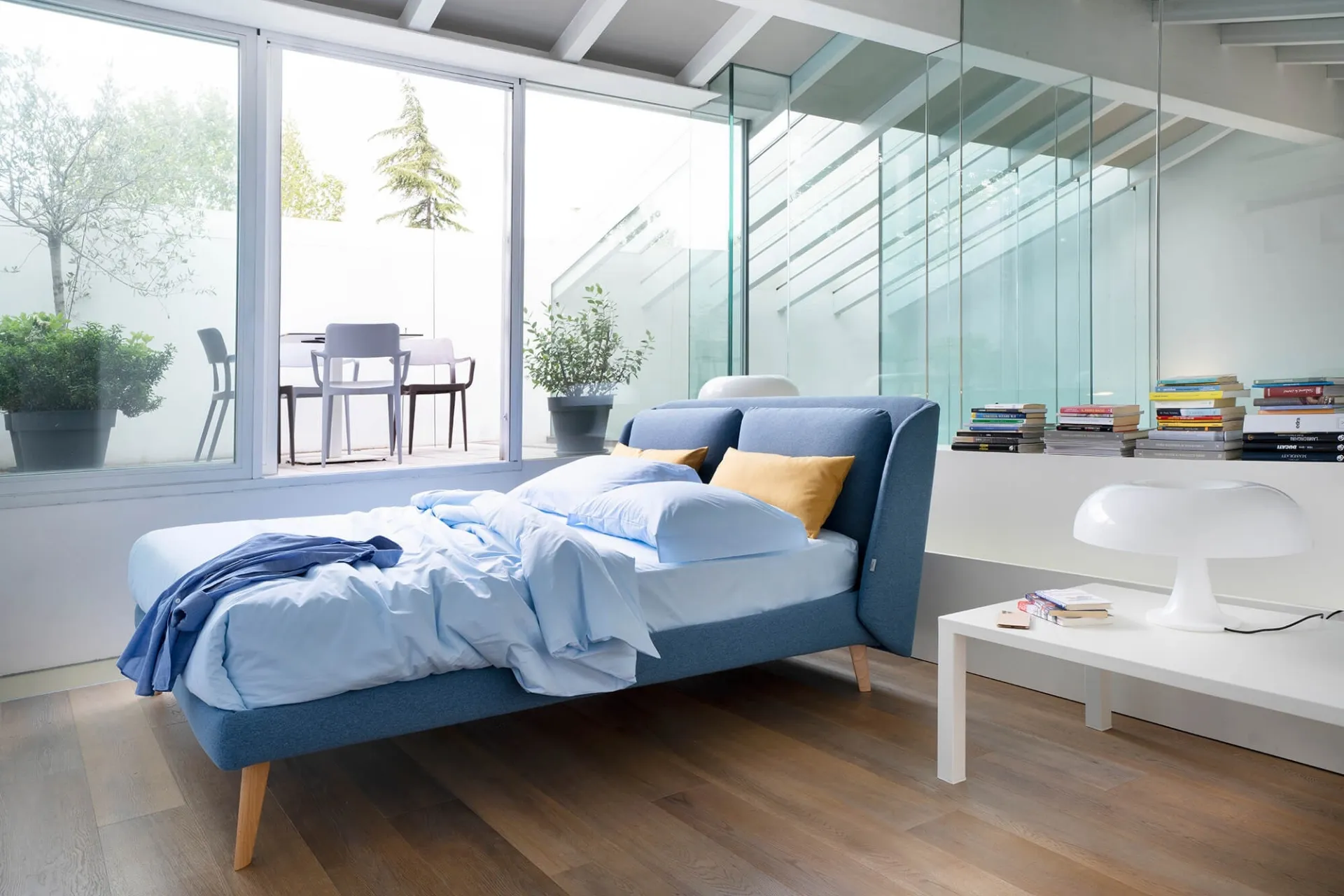 Vuoi attualizzare la camera da letto? Ecco qui il letto in tessuto Hello di Noctis per spazi moderni.
