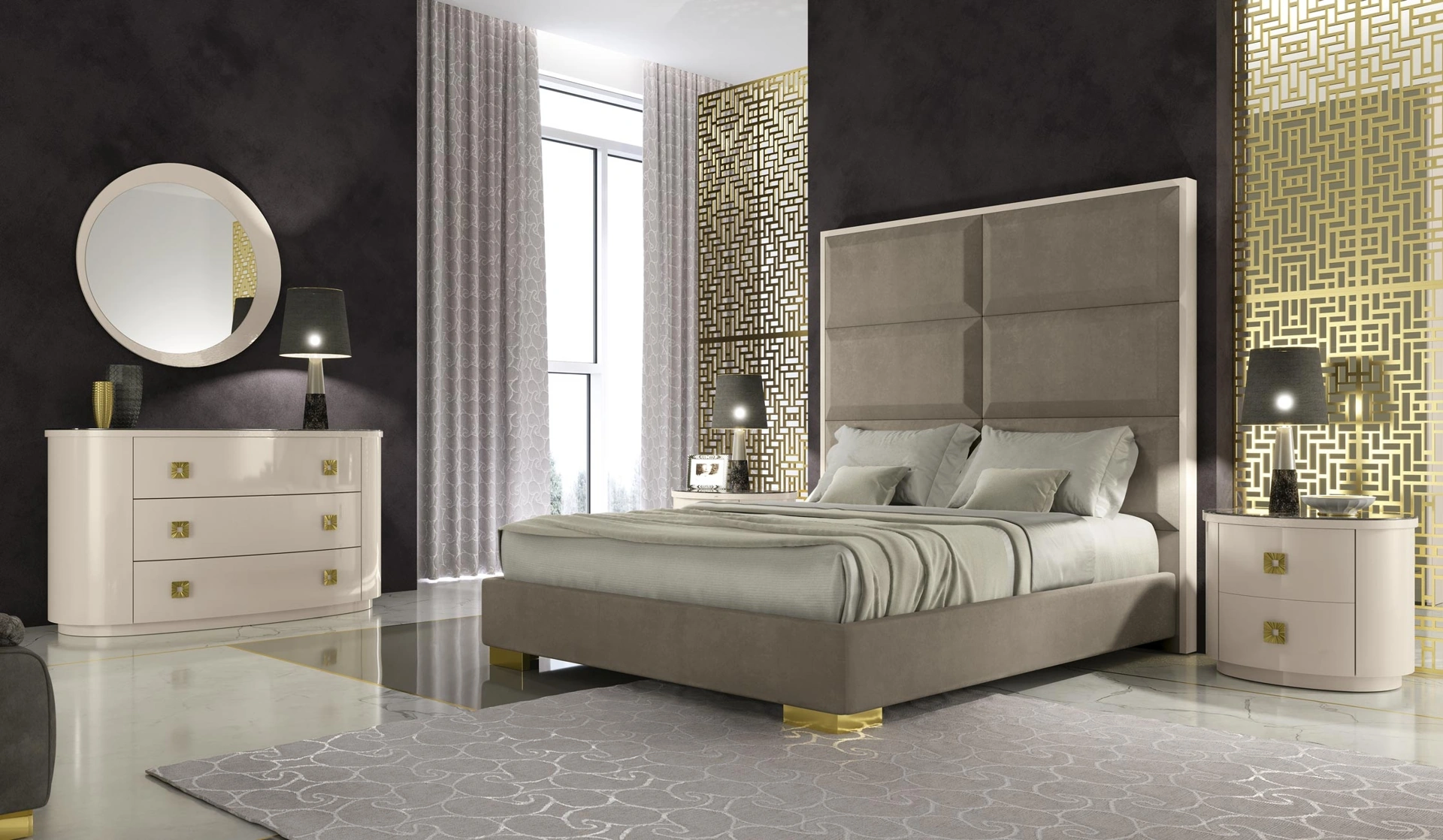 Se vuoi letti matrimoniali imbottiti, eccoti il modello Odeon in tessuto per completare la zona notte.
