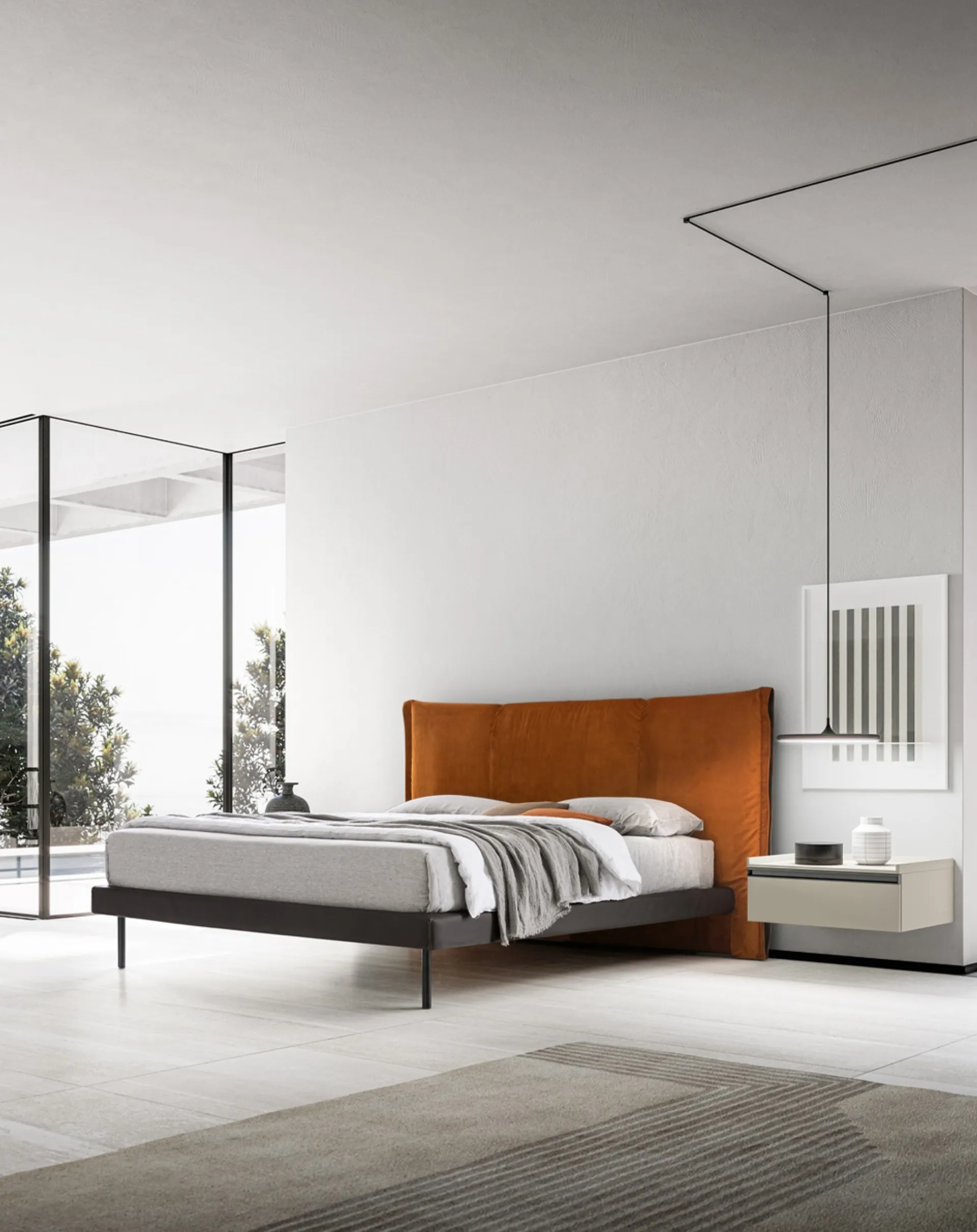 Se vuoi una soluzione in tessuto, il modello visibile in foto è caratterizzato da materiali di qualità e forme decise, che invitano a goderti un riposo sereno e rigenerante. Scegli tonalità e texture e realizza il tuo progetto d’arredo nella zona notte, progettandola proprio come l'avevi immaginata. Durante l'acquisto di un buon modello di letto, valuta attentamente le sue misure, i materiali, la forma e il suo stile rispetto ai restanti pezzi d'arredo. I Letti matrimoniali imbottiti della firma, specialista nella produzione di Arredamento Casa per la zona del riposo, sono progettati per essere abbinati a mobili e complementi di ogni genere, come armadi e comò, lampade e piantane. Il Letto Ghibli di SantaLucia ricrea uno spazio intimo e confortevole in ogni zona notte, assicurandoti il sonno più profondo e uno stile unico.
