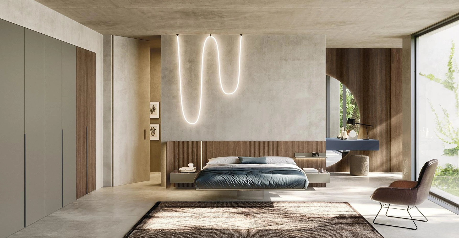 Clicca e scopri di più sui Letti con testiera: se vuoi modelli matrimoniali design, il modello Sistema Sipario N11 Mobilgam fa al caso tuo.