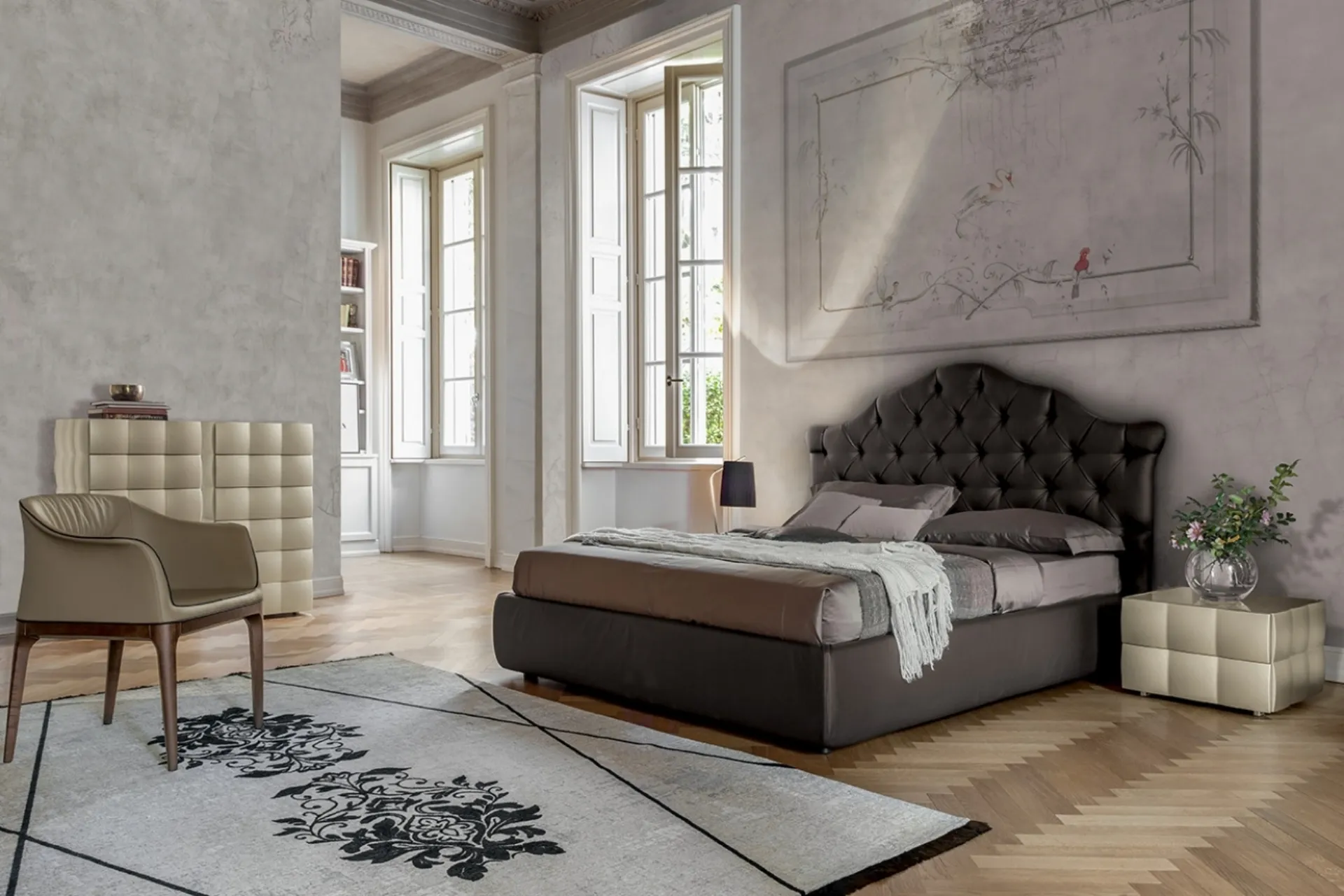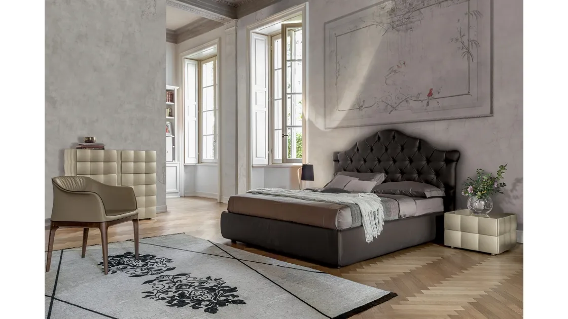 Vuoi ridefinire la camera da letto? Eccoti il letto in pelle Veneziano di Tonin Casa per spazi classici.