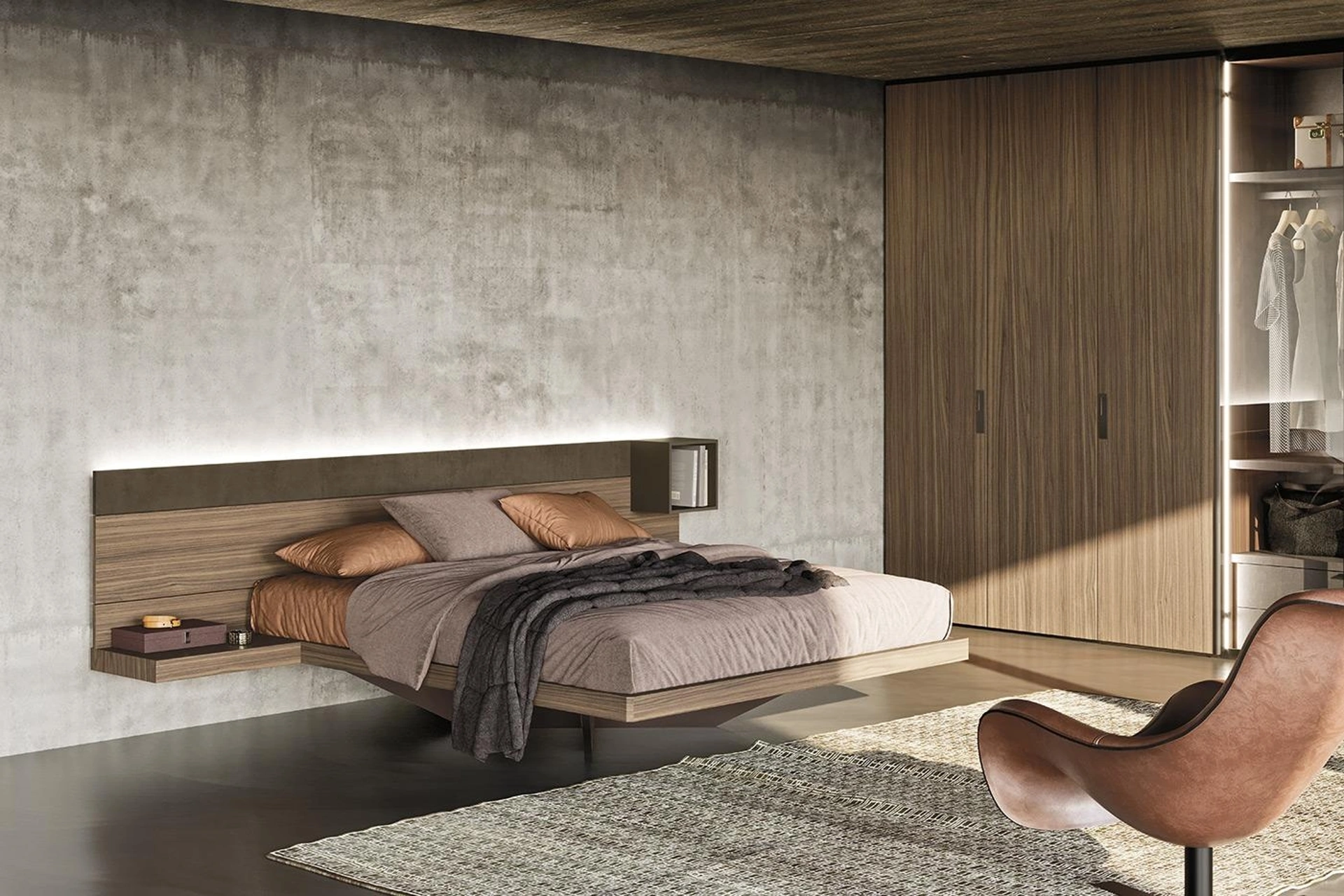 Il letto Wall System N06 in legno, tra i modelli con testiera matrimoniali design di Mobilgam, è pensato per assicurarti il relax totale.