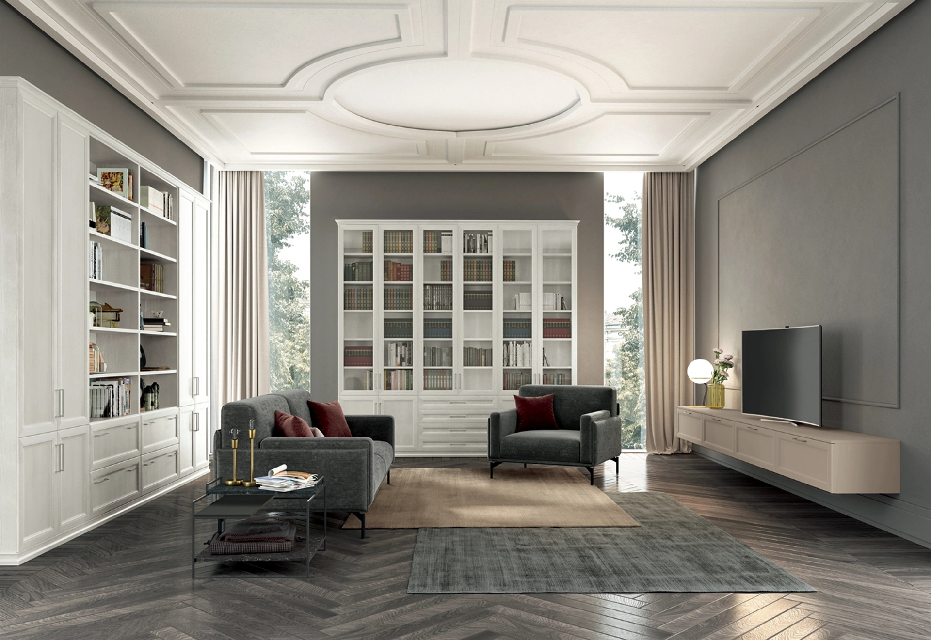 Librerie a muro super funzionali per stanze classiche: ottieni informazioni sul modello Arcadia AS006 del marchio Colombini Casa!