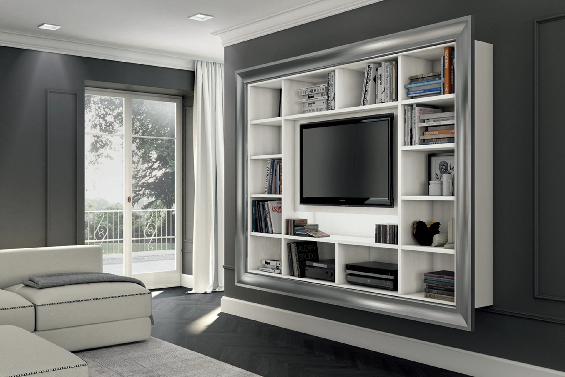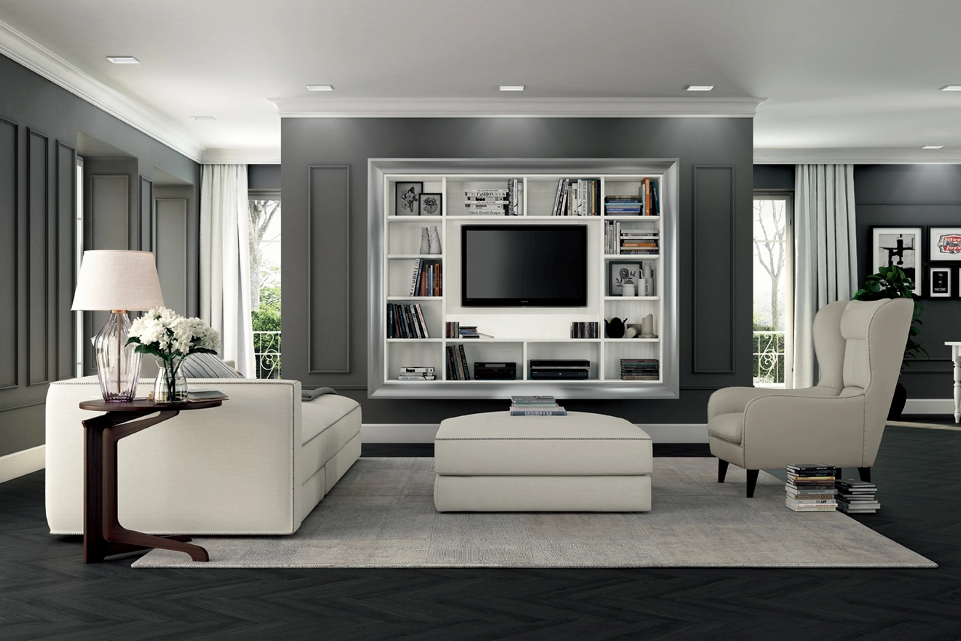 Texture di pregio e linee decise: scopri la libreria Arcadia AS007 di Colombini Casa tra le più belle Librerie classiche sospese.