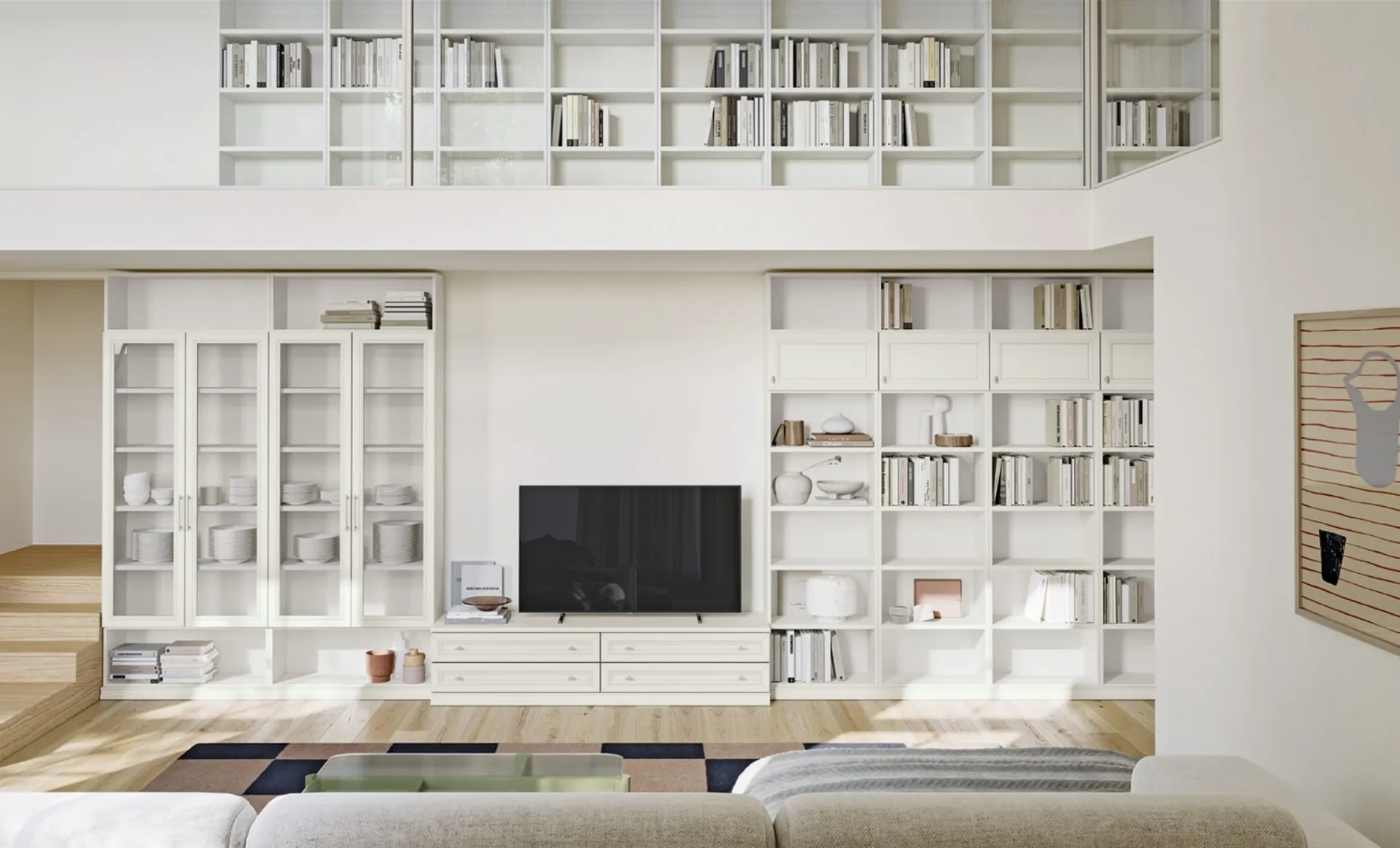 Se cerchi librerie componibili per il soggiorno, clicca e scopri le nostre soluzioni classiche: il modello Arcadia L001 Colombini Casa ti attende!