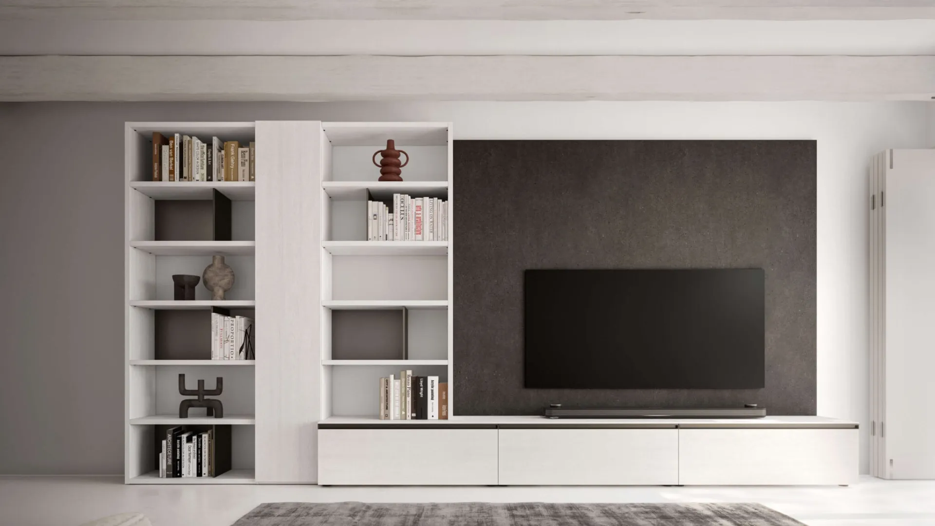 Vuoi rinnovare la zona giorno? Scopri di più sulle librerie moderne a muro e arreda i tuoi interni con il modello Homy Collection 05.