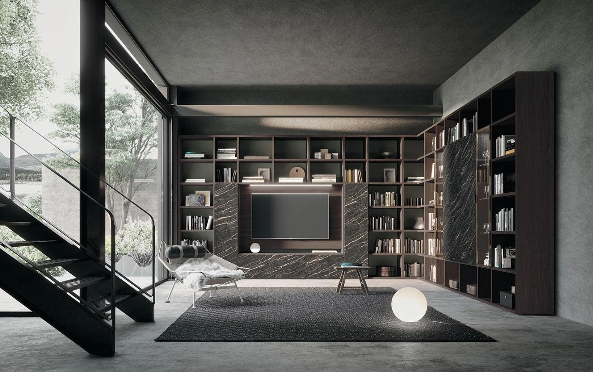 Materiali di pregio e forme decise: scopri la libreria Horizon 942 di Mobilgam tra le più esclusive Librerie moderne componibili.