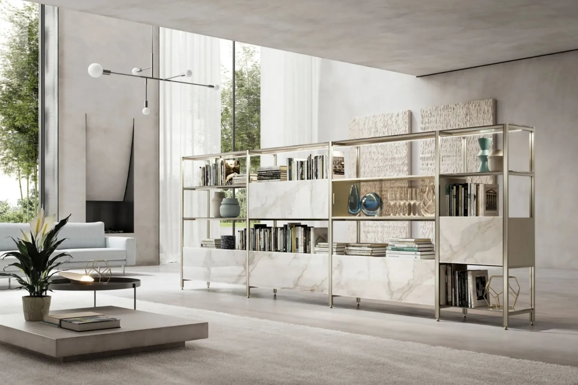 Texture di pregio e linee decise: scopri la libreria Mida Divisoria di Sangiacomo tra le più originali Librerie moderne divisorie.