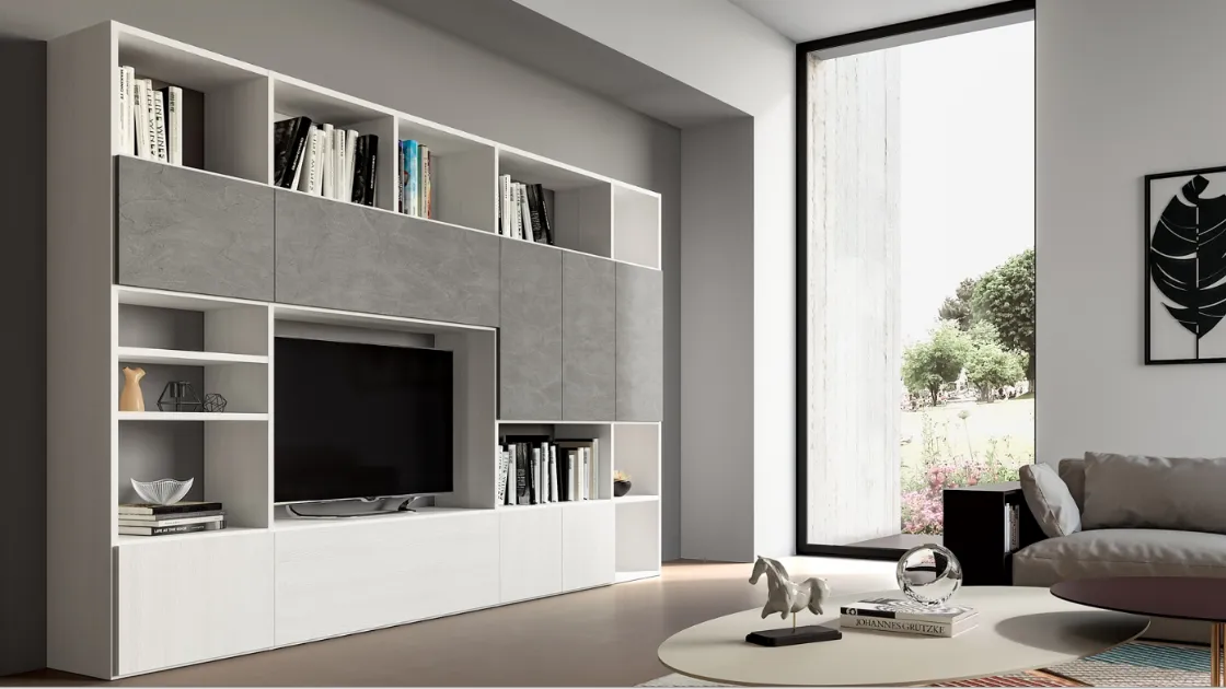 Potrai utilizzare questi mobili come una superficie di appoggio plurifunzionale, per riporci sia oggetti d'uso quotidiano, sia propriamente decorativo. Scopri le più originali soluzioni salvaspazio, come la libreria nell'immagine in materico, e dai vita al soggiorno dinamico e operativo che hai sempre desiderato. Rivolgendoti ai nostri arredatori potrai avere info di ogni genere sulla Libreria PTG314 di SantaLucia qui visibile. Valorizza i tuoi spazi con i mobili ed elementi accessori SantaLucia: in showroom ti attendono prodotti funzionali e di alto contenuto estetico, sempre in materiali durevoli e di gran classe. Il noto e conosciuto brand produce Librerie componibili moderne in una vasta gamma di forme, dimensioni, soluzioni e cromie per garantire la massima versatilità.