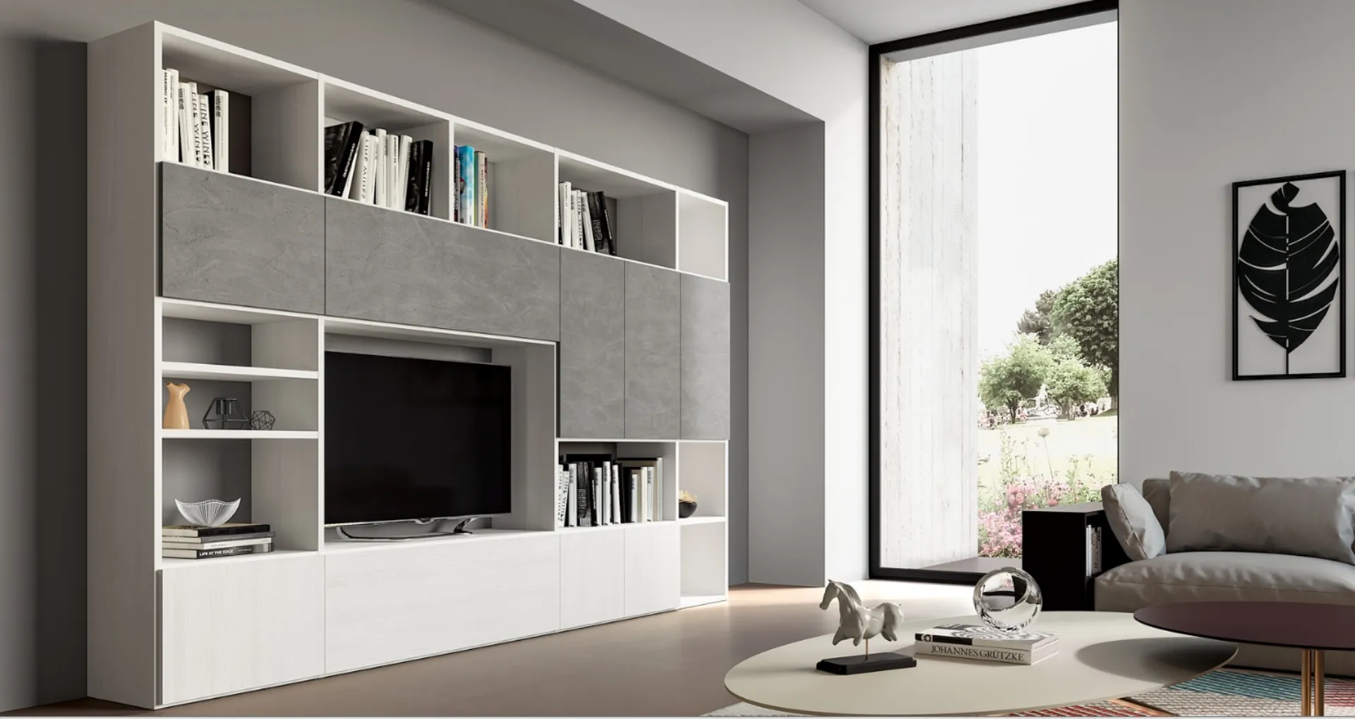 Materiali di pregio e linee decise: scopri la libreria PTG314 di SantaLucia tra le più esclusive Librerie moderne componibili.