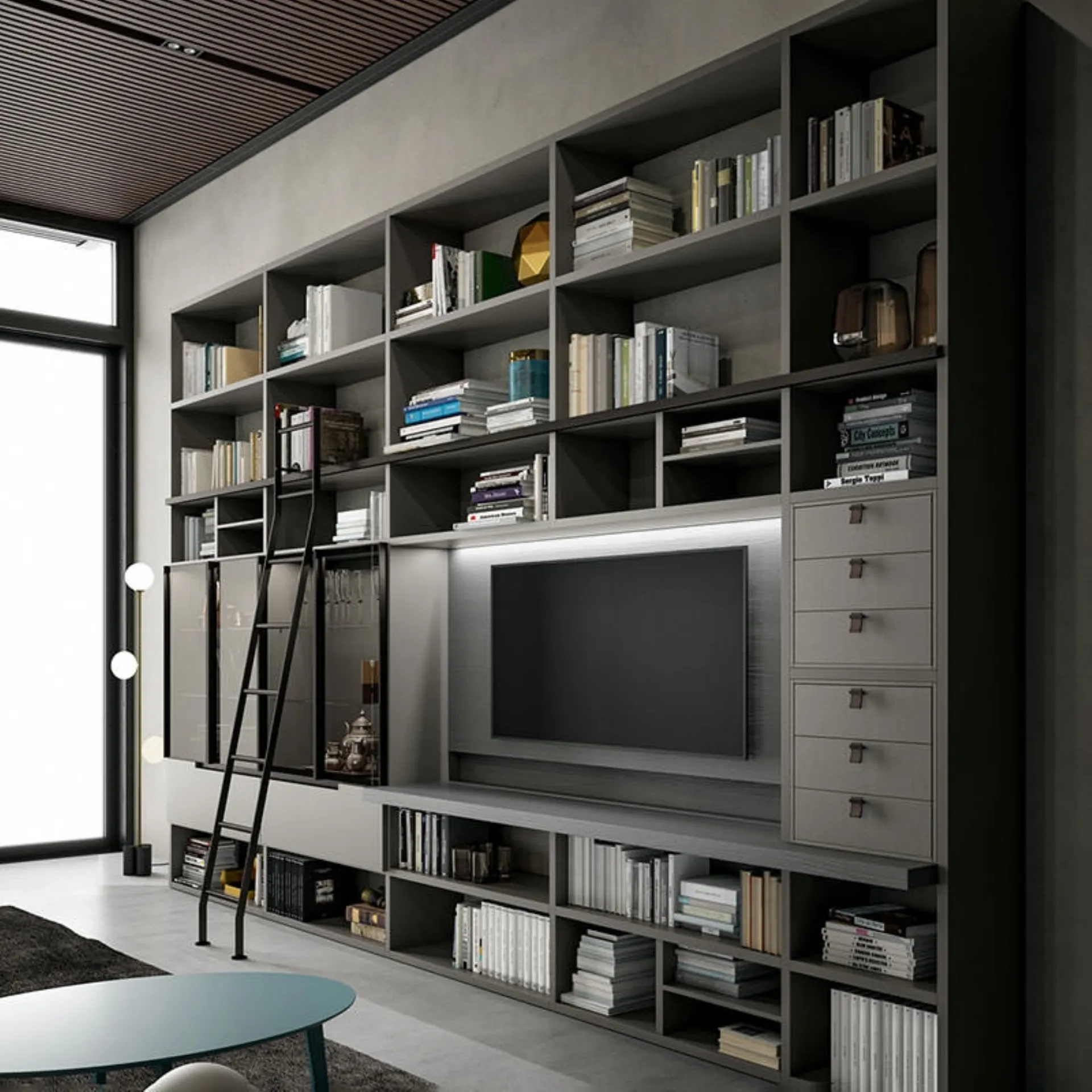 Librerie a muro davvero funzionali per stanze moderne: scopri di più sul modello Speed Up con scala del marchio Dall'Agnese!