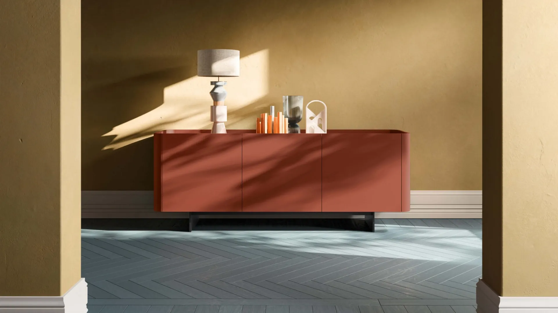 Arreda un living operativo e pratico con questa madia Aster di SantaLucia: scopri le più originali Madie in laccato opaco.