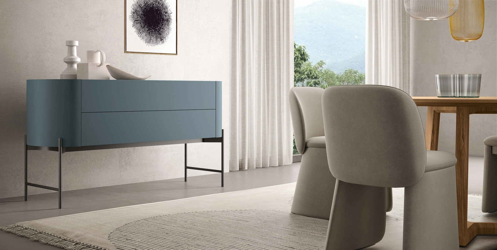 Arreda un living operativo e pratico con questa madia Bend di Adriatica: scopri le più originali Madie in laccato opaco.
