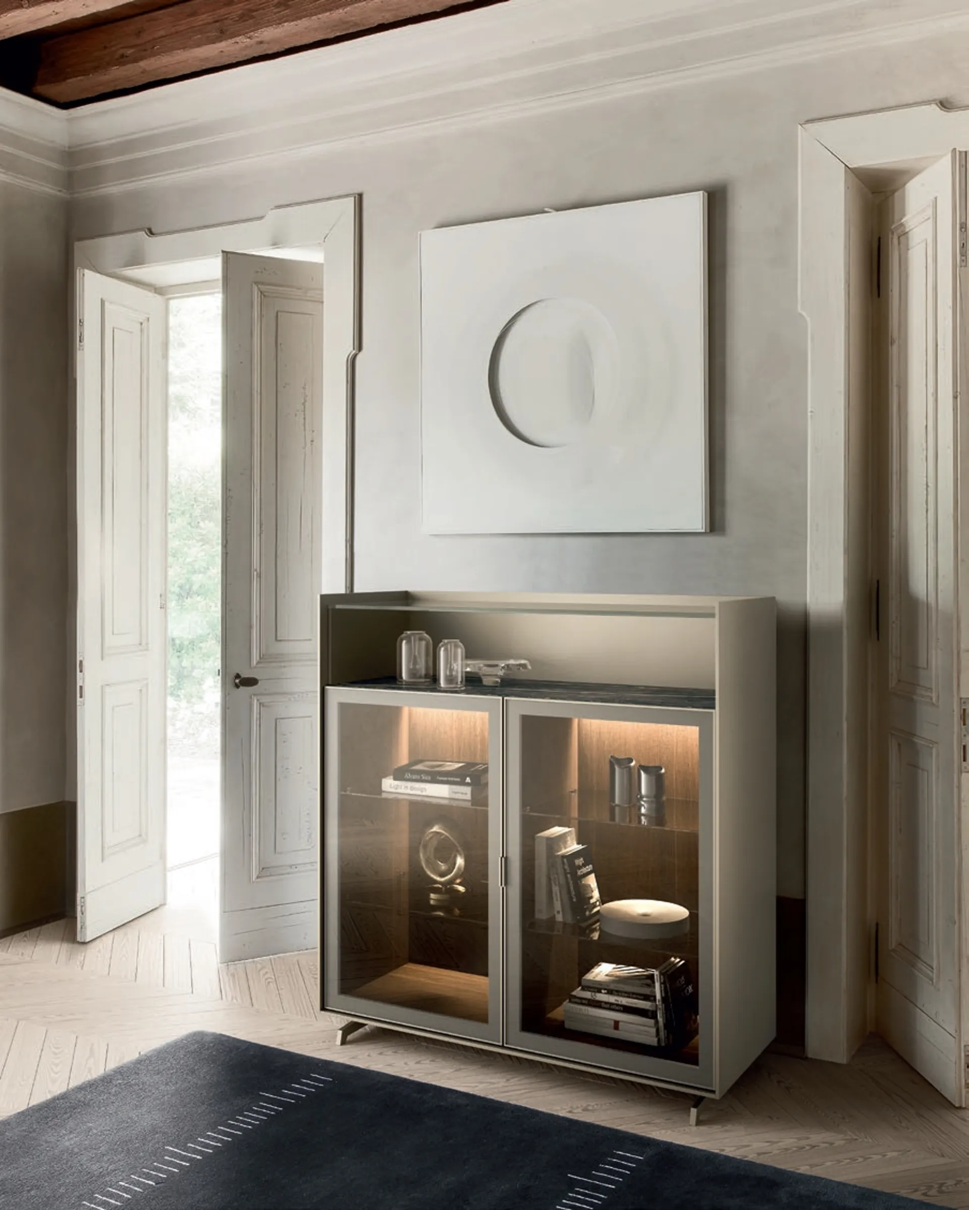 Clicca e scopri di più! Mobile soggiorno Cabaret Teca di Sangiacomo in vetro: ti aspetta per completare le tue stanze moderne.