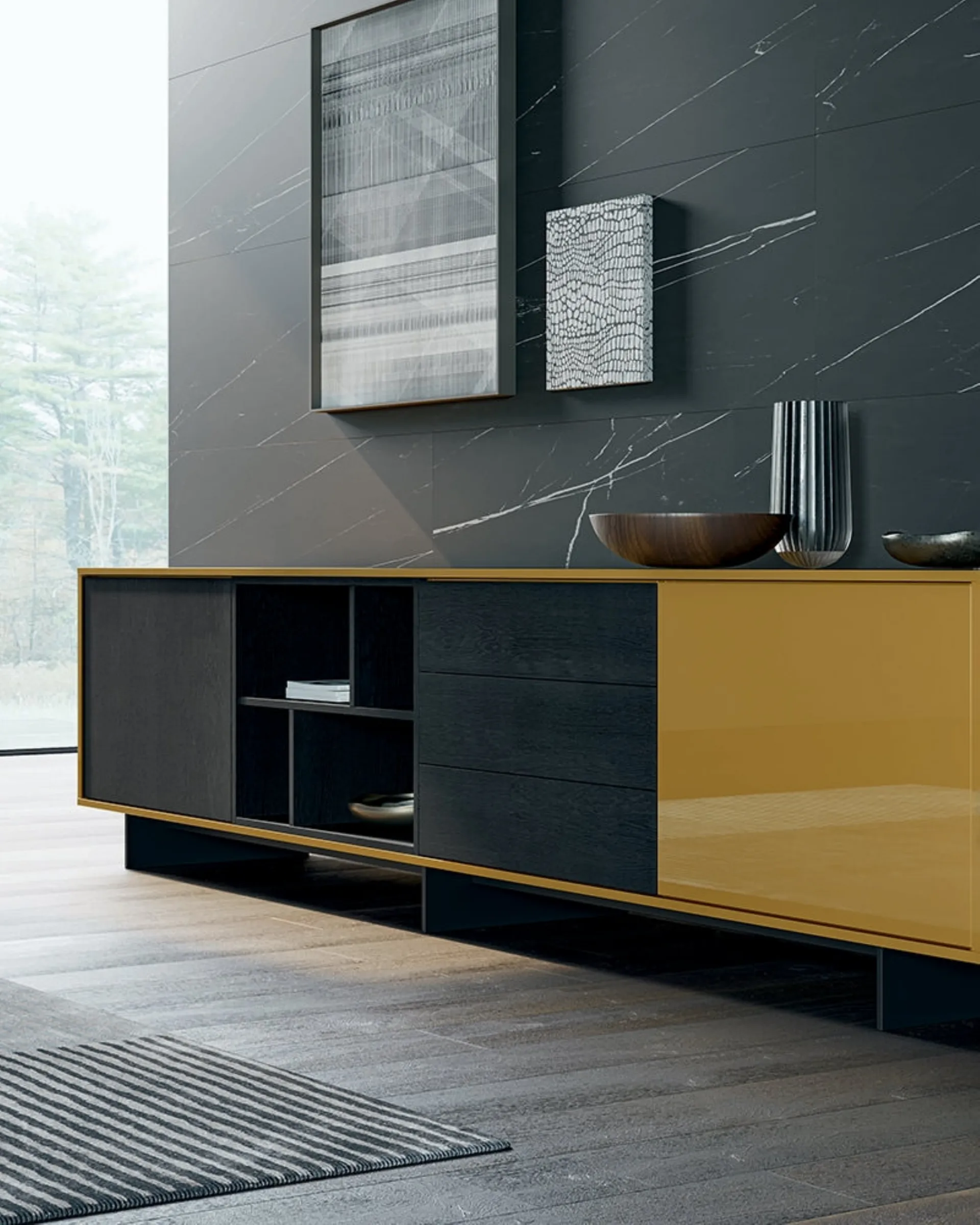 Arreda un living dinamico e operativo con questa madia Code di Dall'Agnese: scopri le più esclusive Madie in laccato lucido.