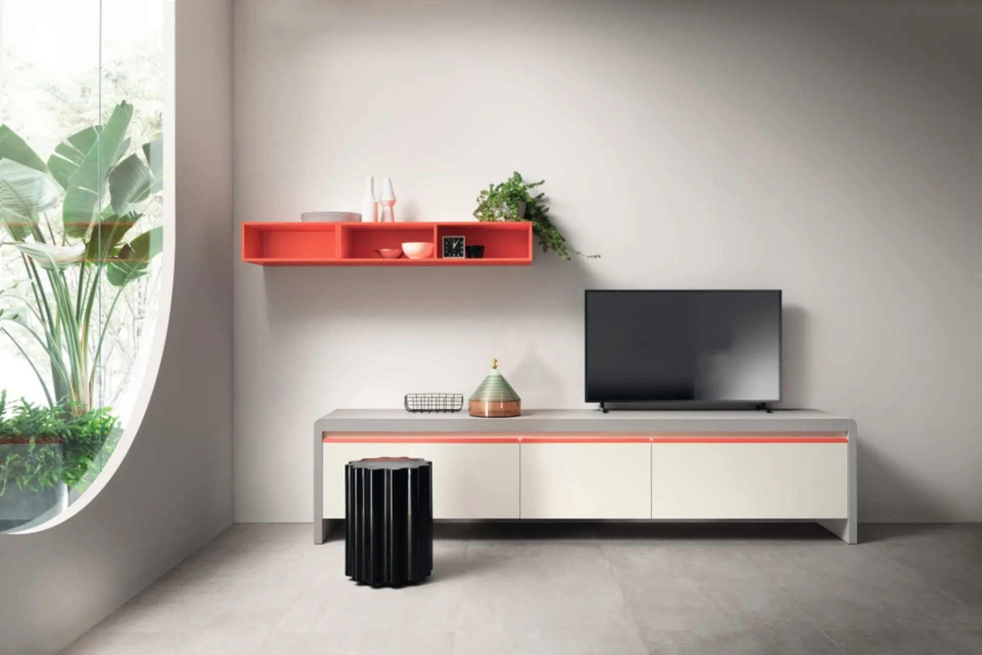 Cerchi una nuova madia funzionale ed esteticamente gradevole dalle linee moderne? Ti presentiamo il modello Living Dandy Plus Bianco e Rosso Corallo di Scavolini, realizzato in melaminico.