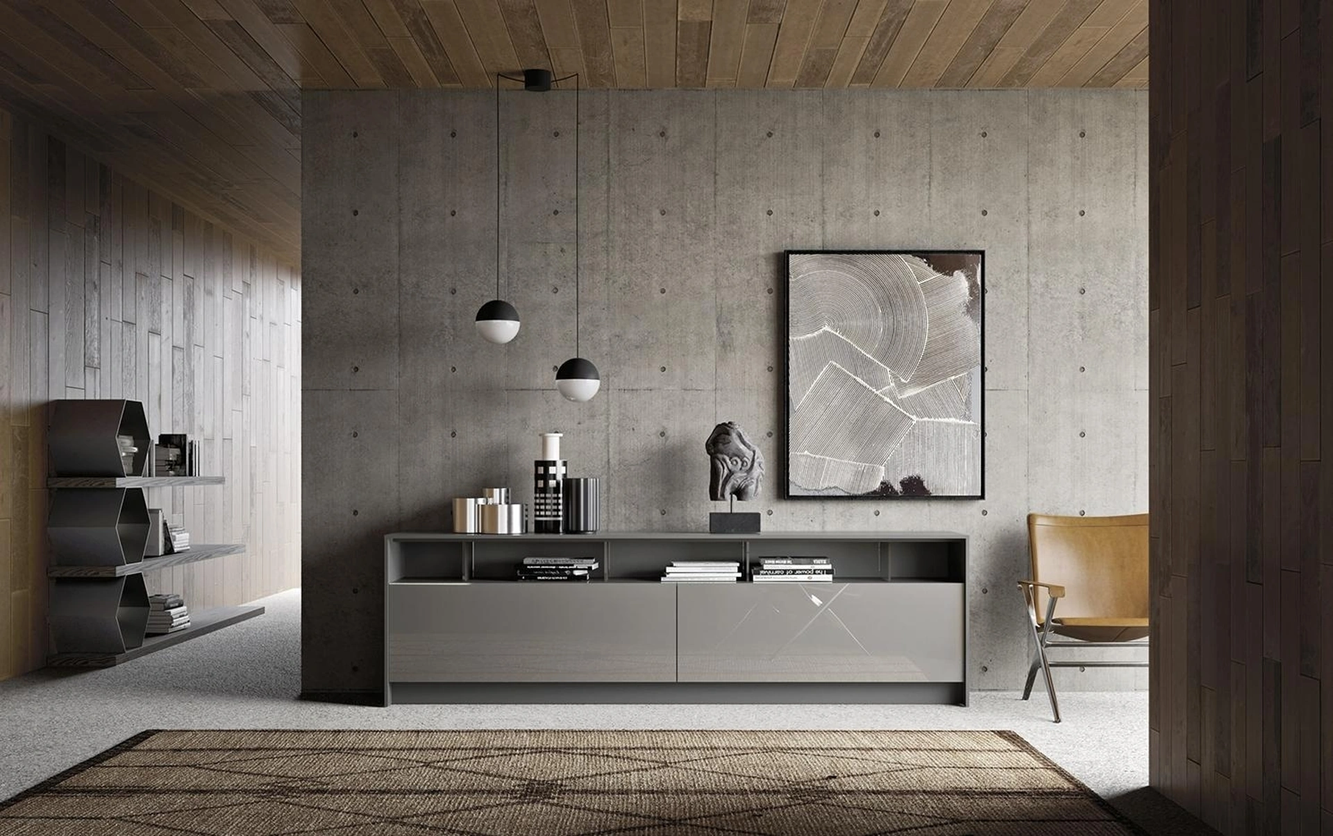 Arreda un soggiorno operativo e pratico con questa madia Horizon Athea 976 di Mobilgam: scopri le più esclusive Madie in laccato lucido.